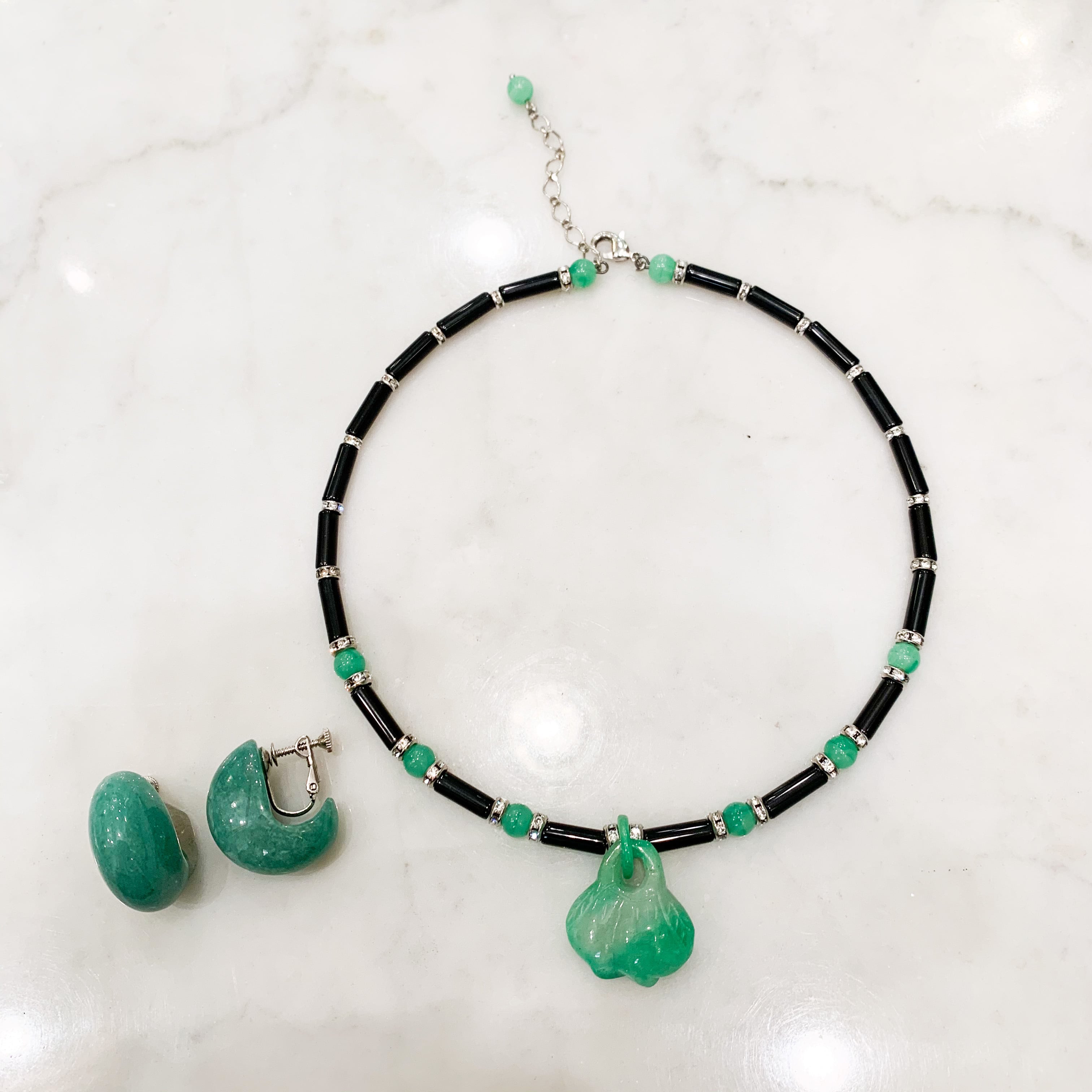 穏やかなギョクの緑色の香りを引き立たせるのはオニキスの黒。