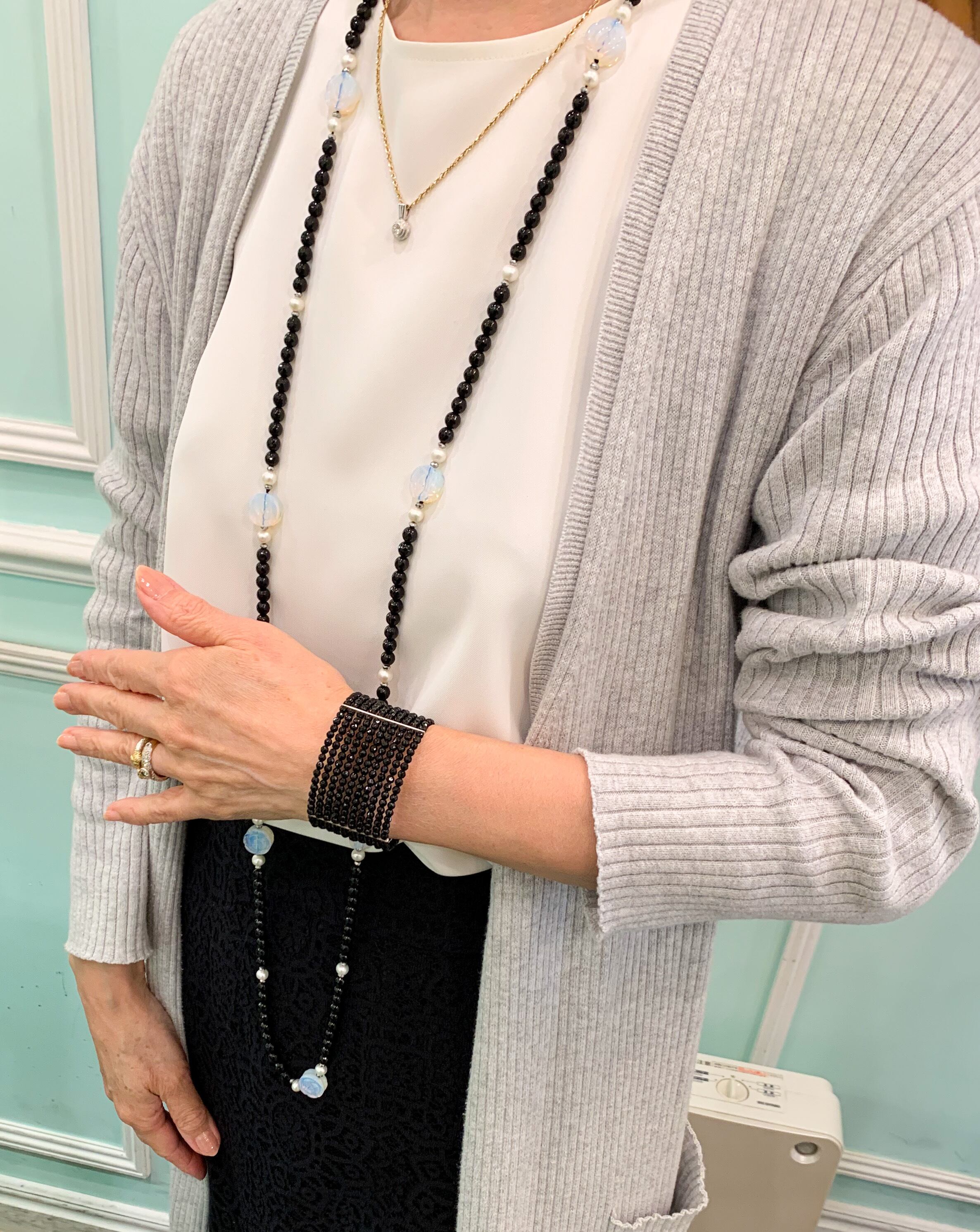 サラッと一連で付けてもいいし、グルっと回して二重にしたり、三連にしてみたり。