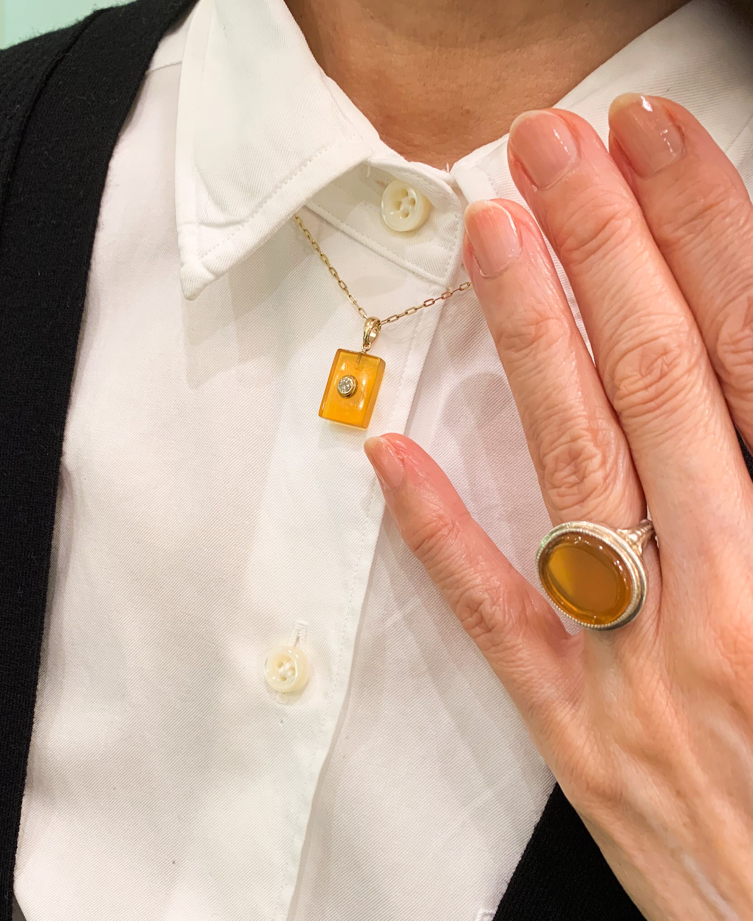 半透明な蜜色の白べっ甲は独特の美しさ。