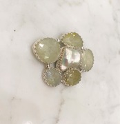濃淡はあるのですが、白く優しいトーンのサファイアを、白く輝くバロックパールの周りに配した、白く輝くブローチです。