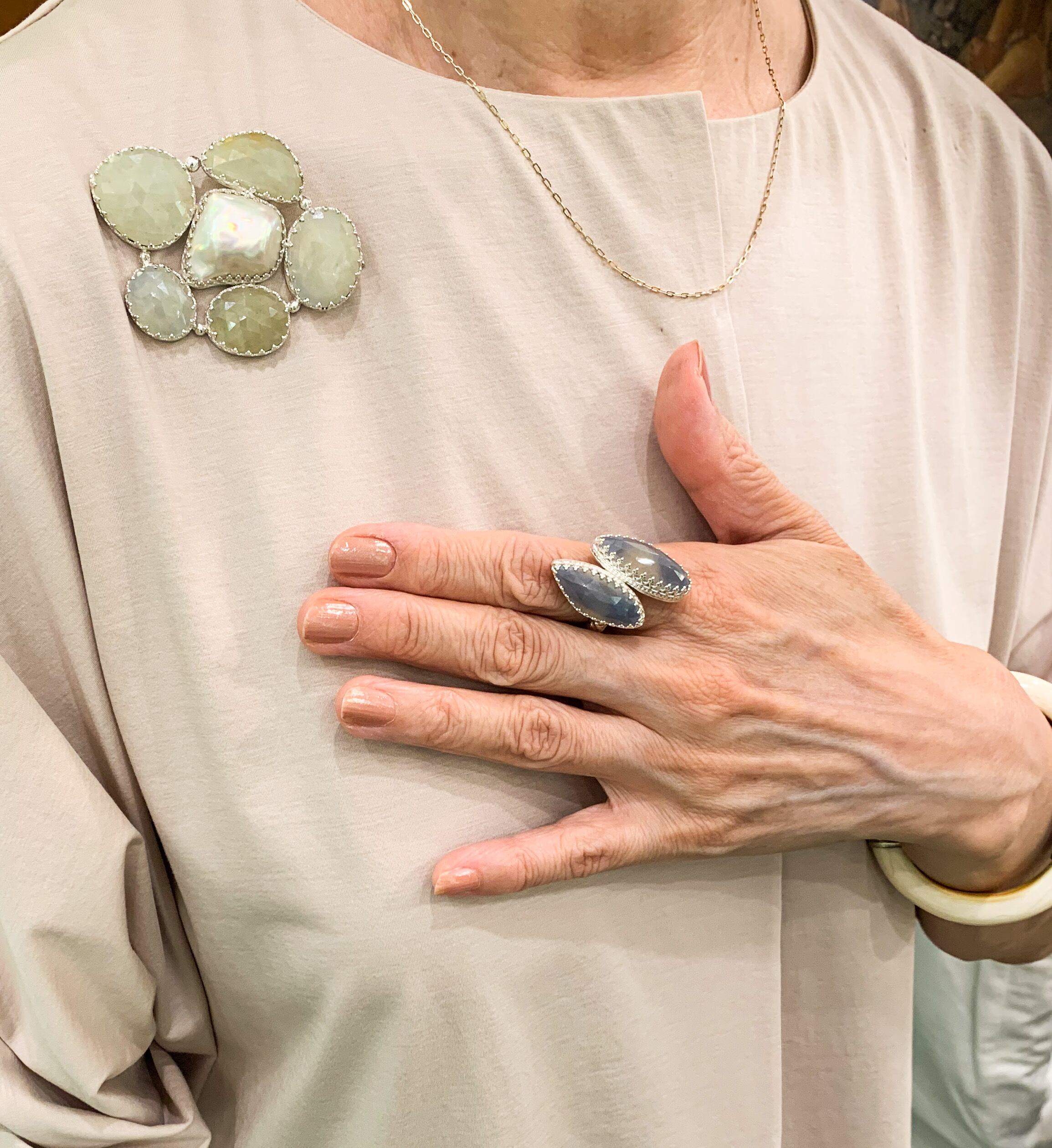 五大貴石のうち2つを使っていながらもどこかカジュアルな雰囲気。