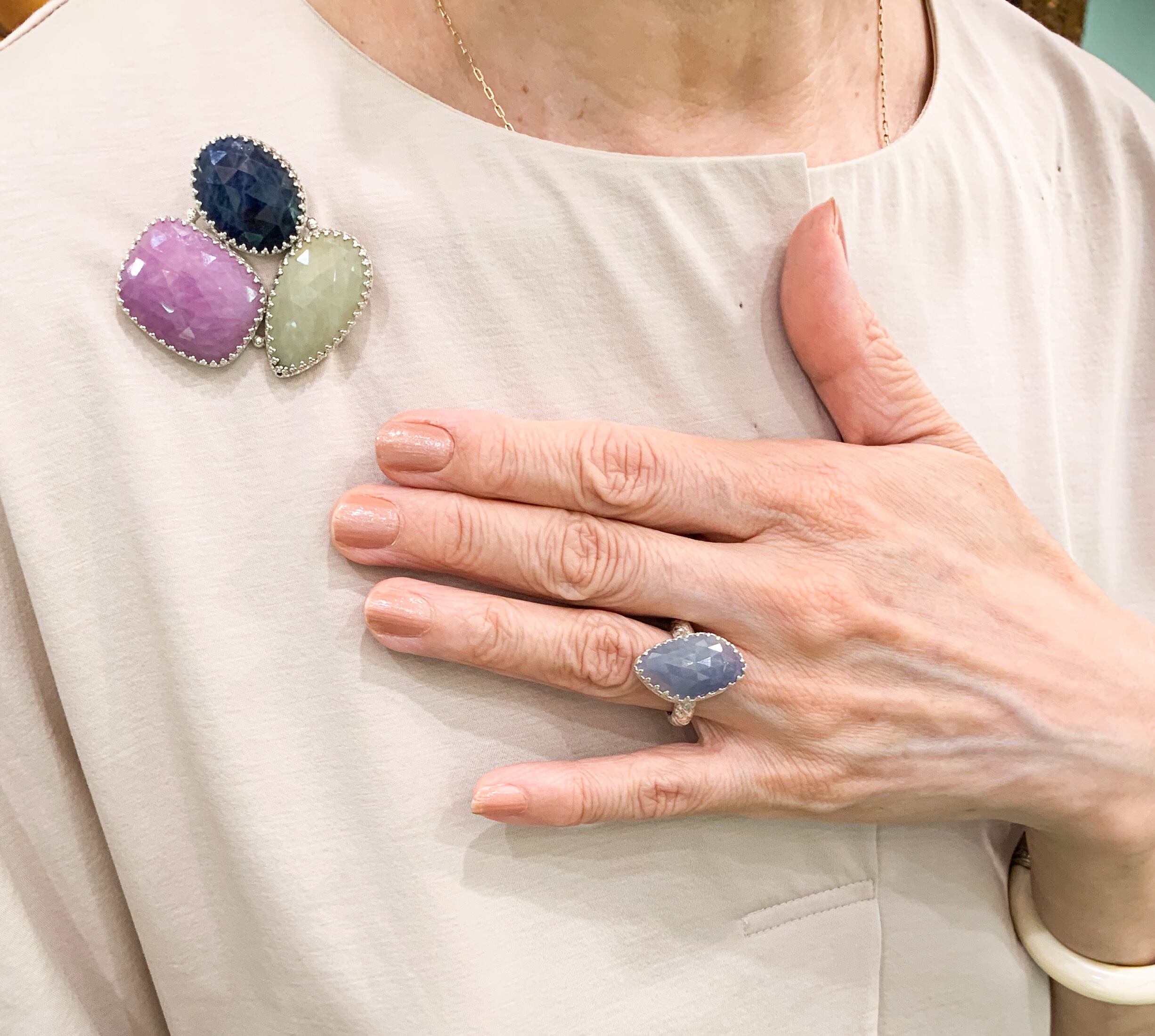 そして淡いトーンのブルーグレーの色もやわらかく、使いやすい指輪になっています。