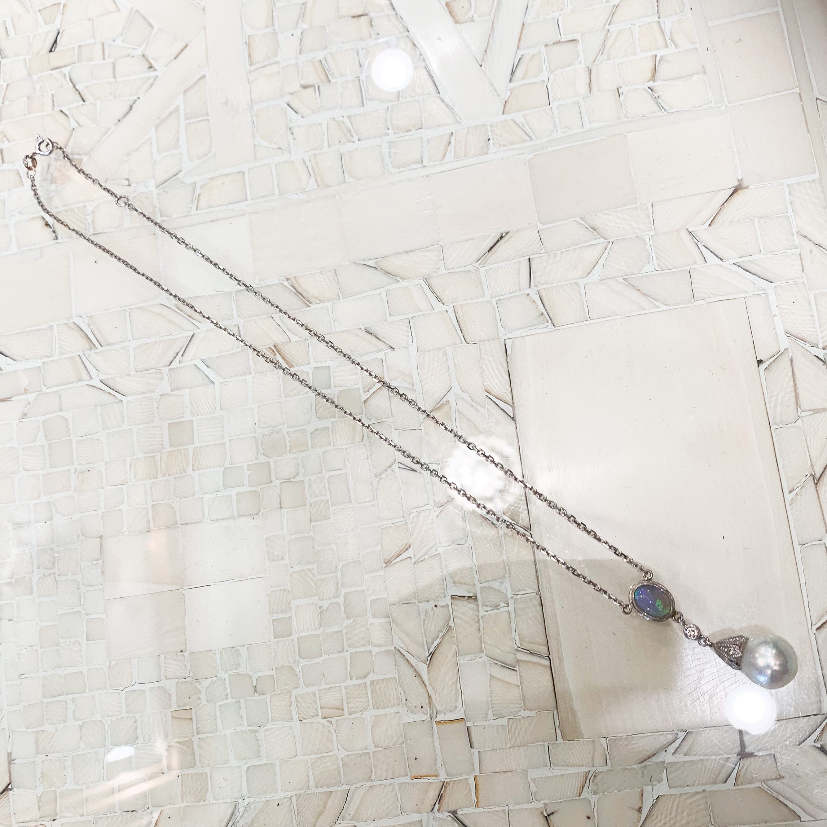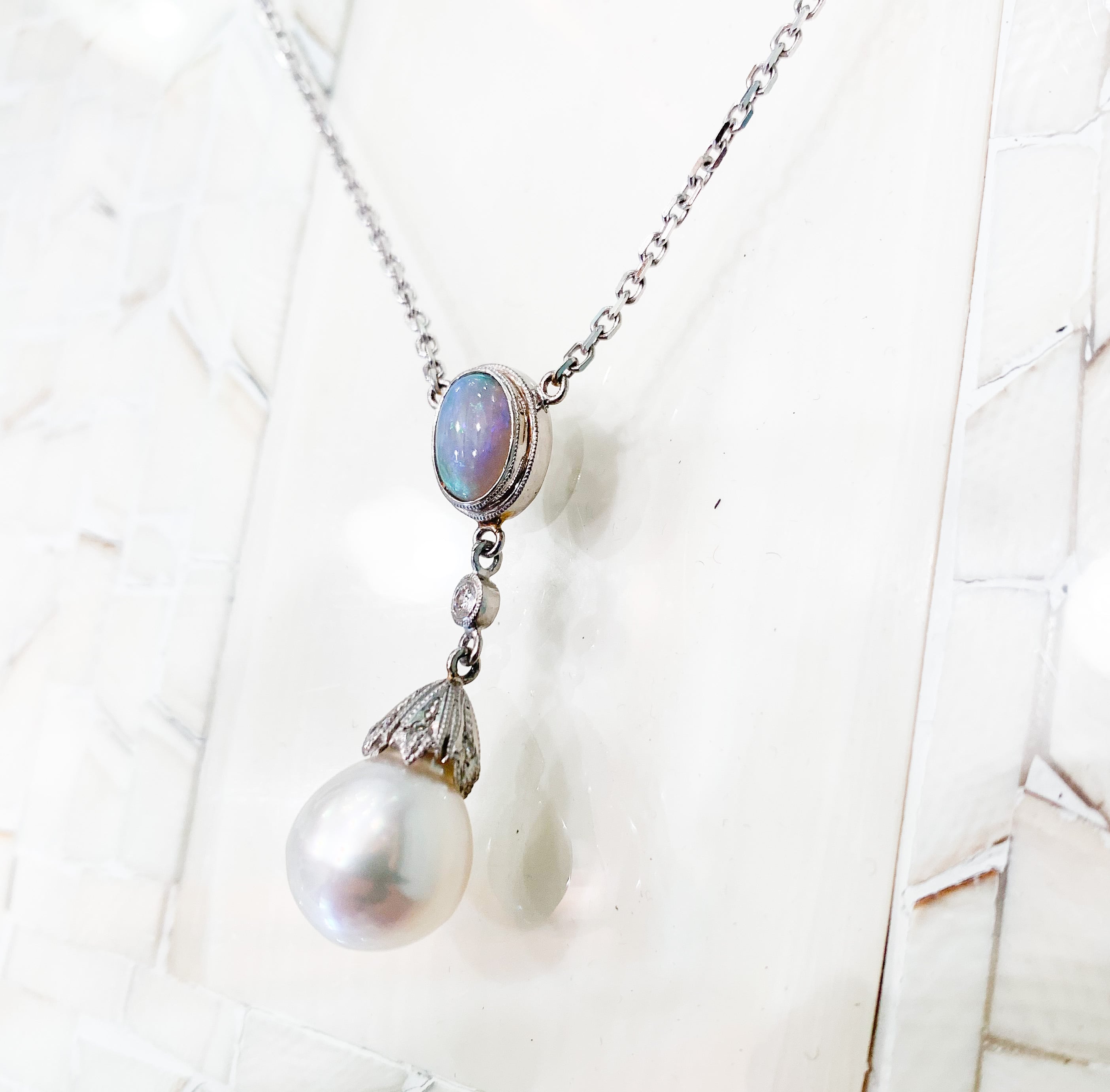 プラチナ、オパール、ダイヤモンド、南洋真珠のネックレス