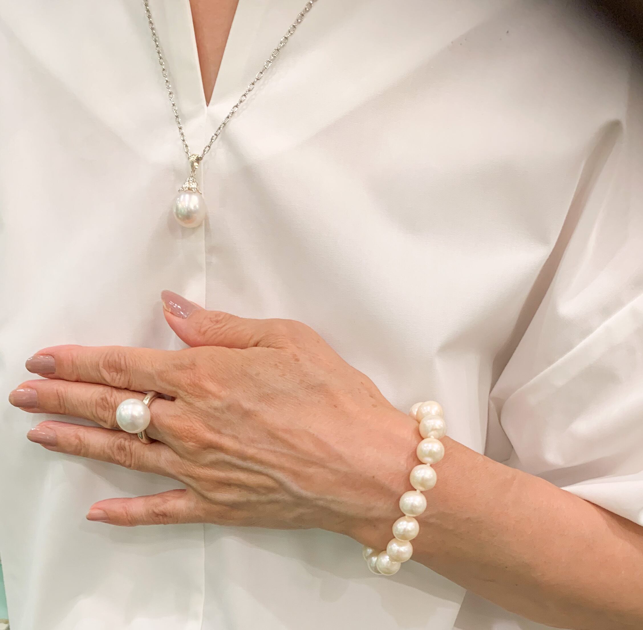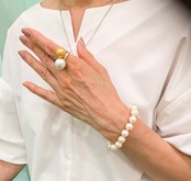 大粒の南洋真珠の指輪なのにすごくカジュアル。