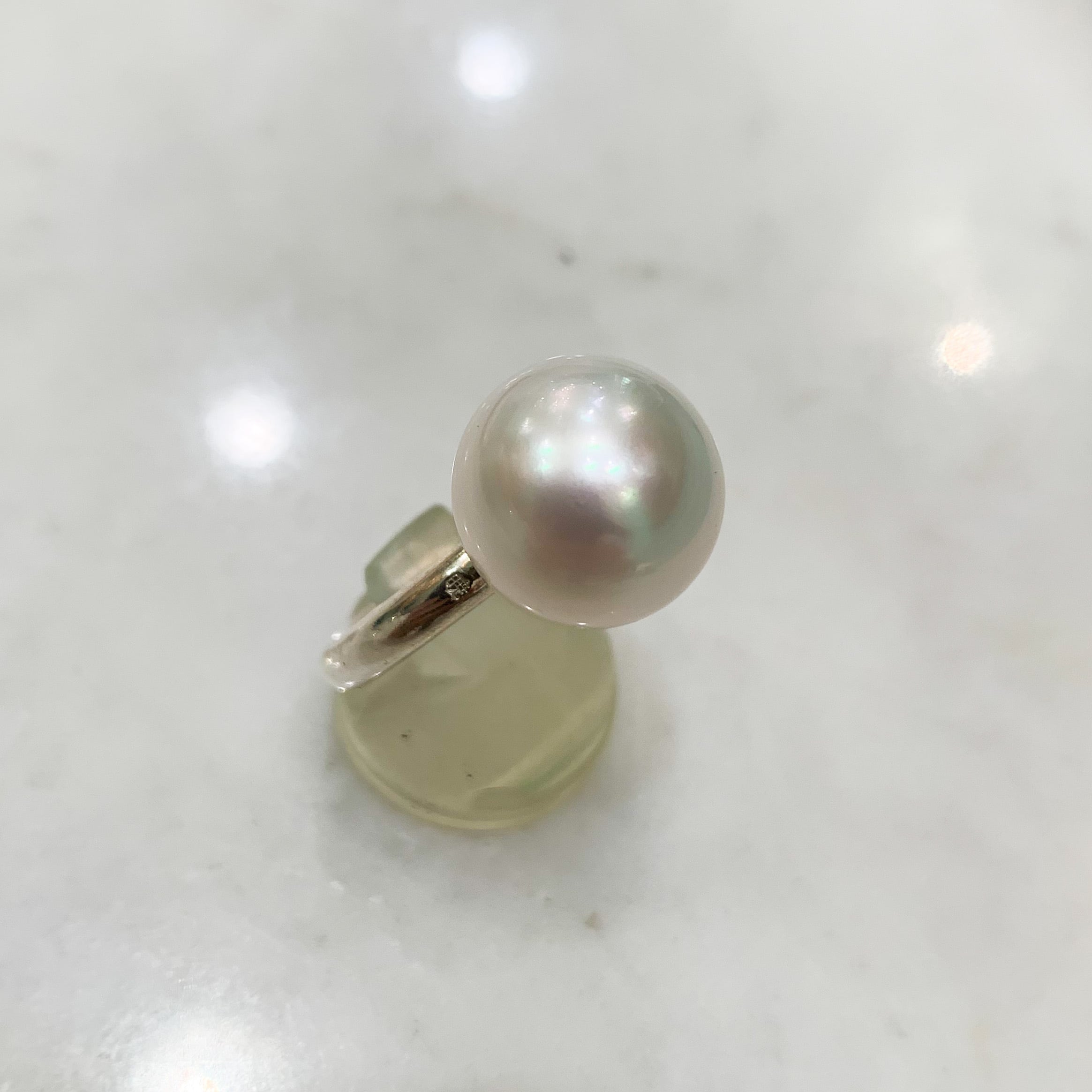 南洋真珠(14mmアップ)の細いシルバー台リング