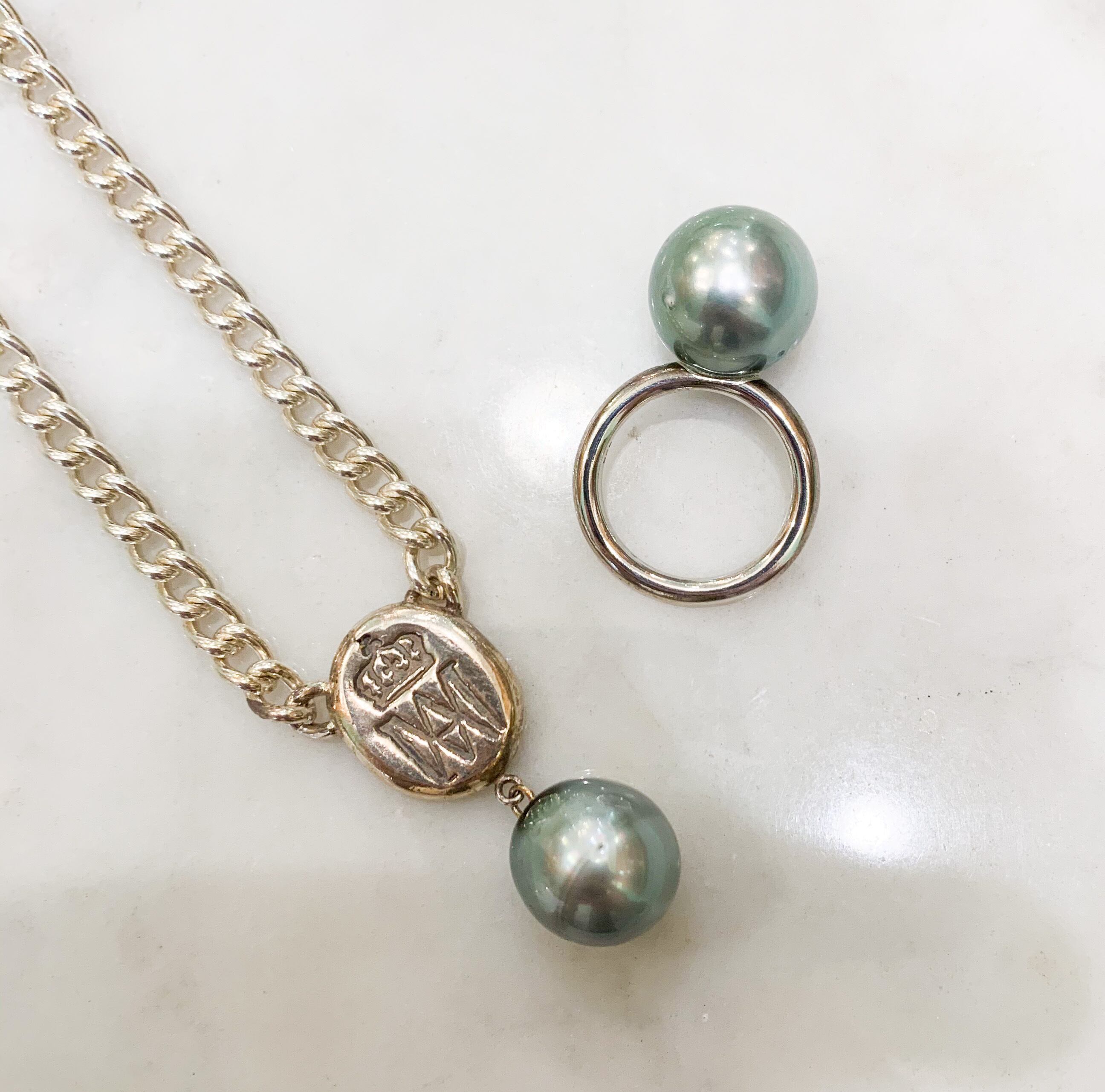シルバーだけだとハードすぎるのですが、この真珠が入ることで、ググッと使いやすくなっています。