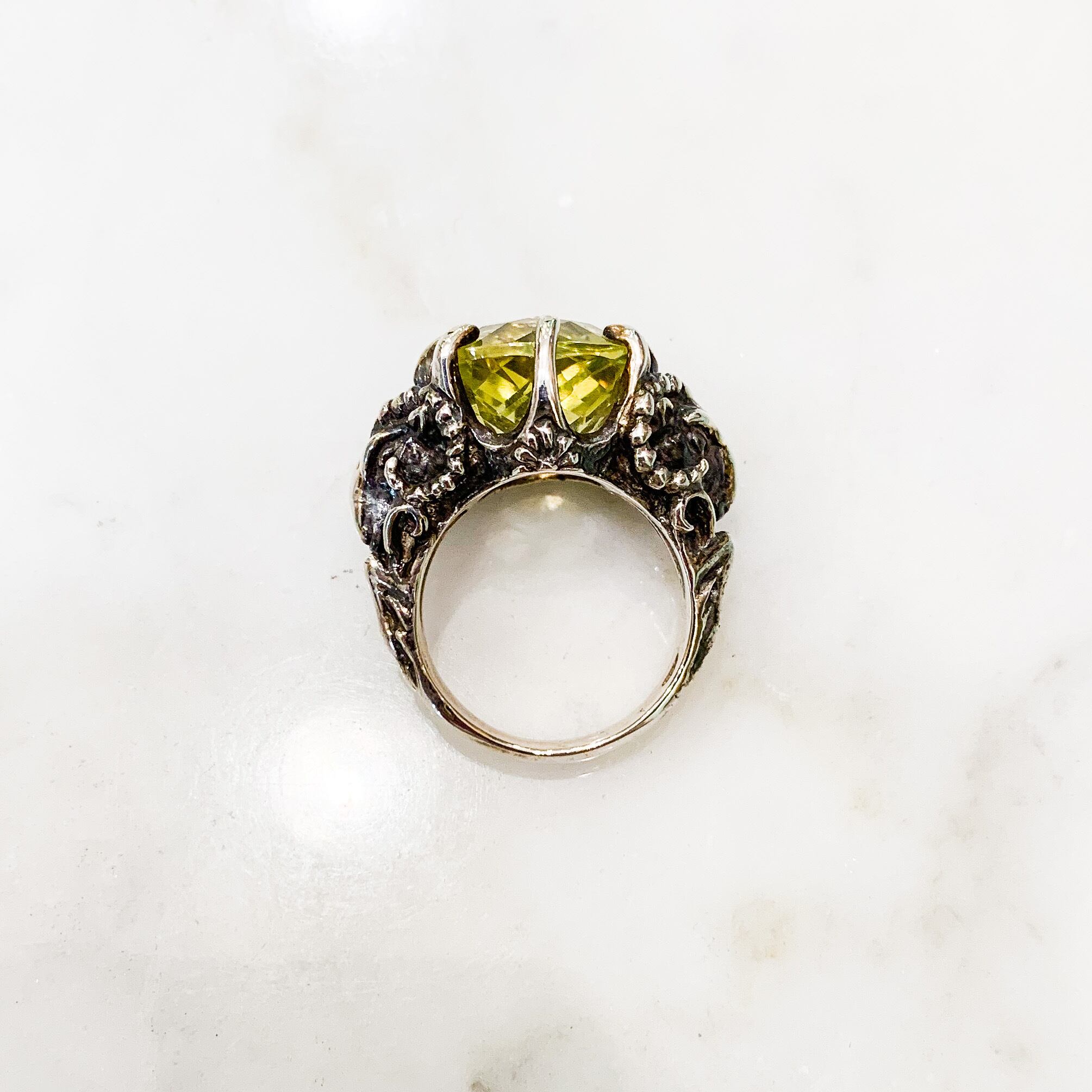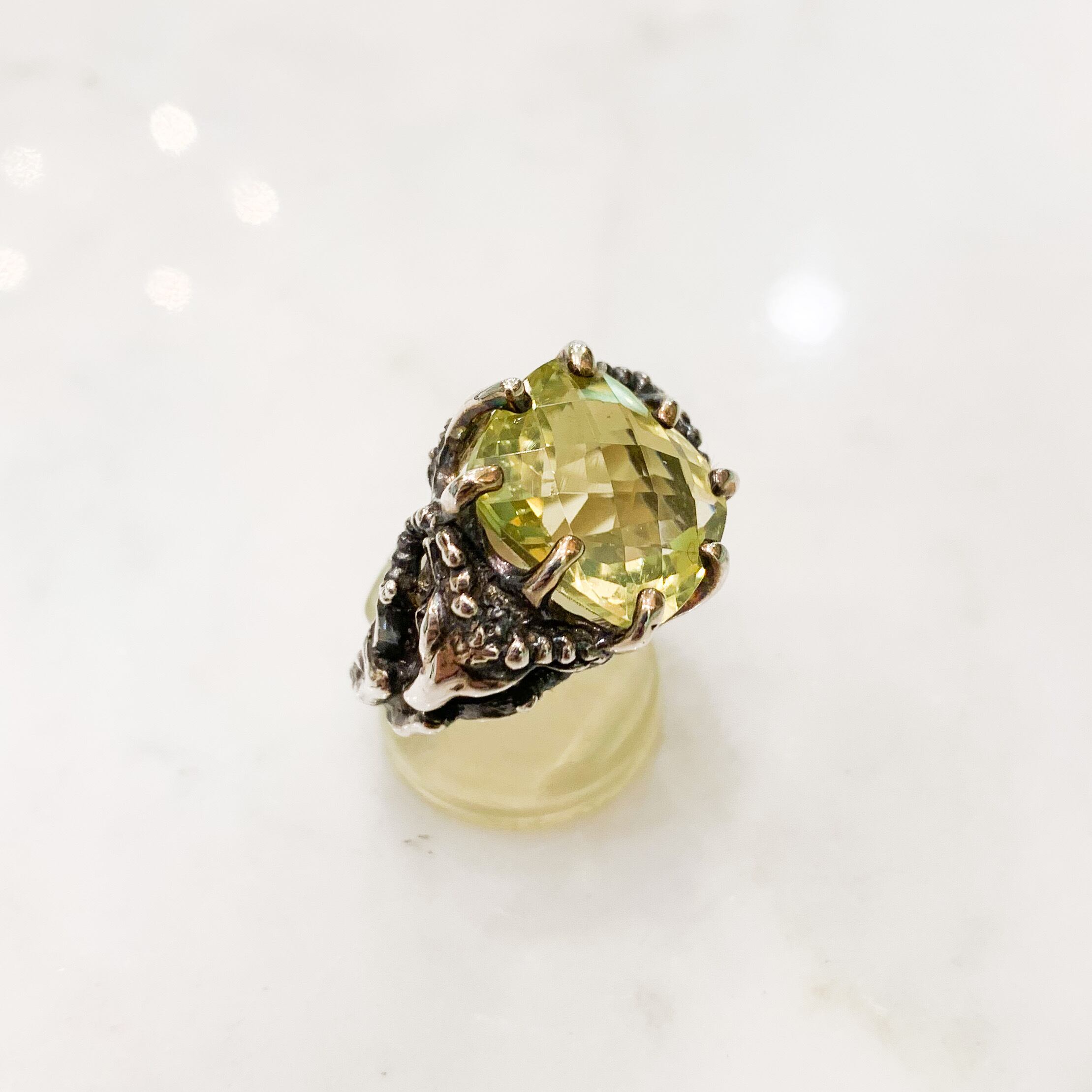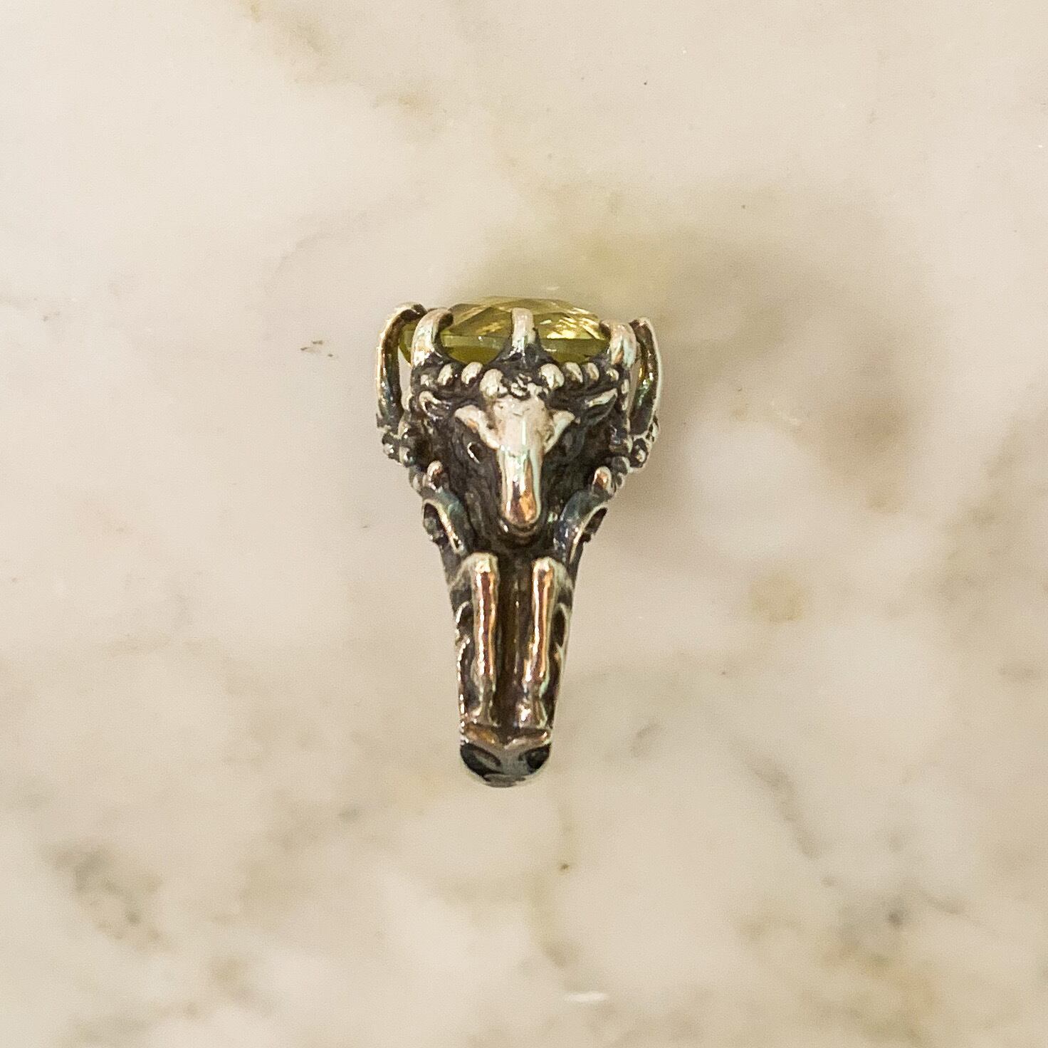 四角いレモンクォーツの銀の山羊リング