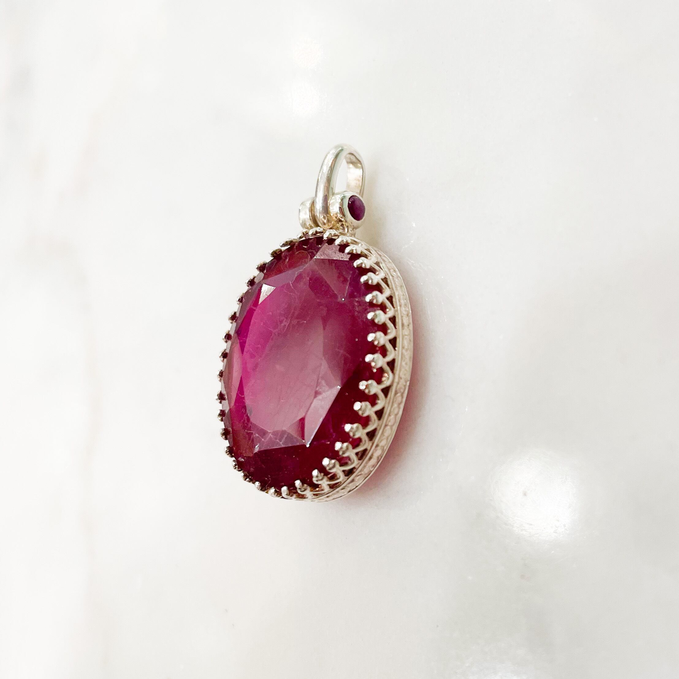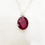 シルバーで王冠留めされたルビー(32.93ct)のペンダント(チェーン別)
