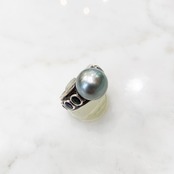 ツヤやかな濃いグレーの上に、虹色の輝きを浮かべる真珠は、どこか妖しげ。