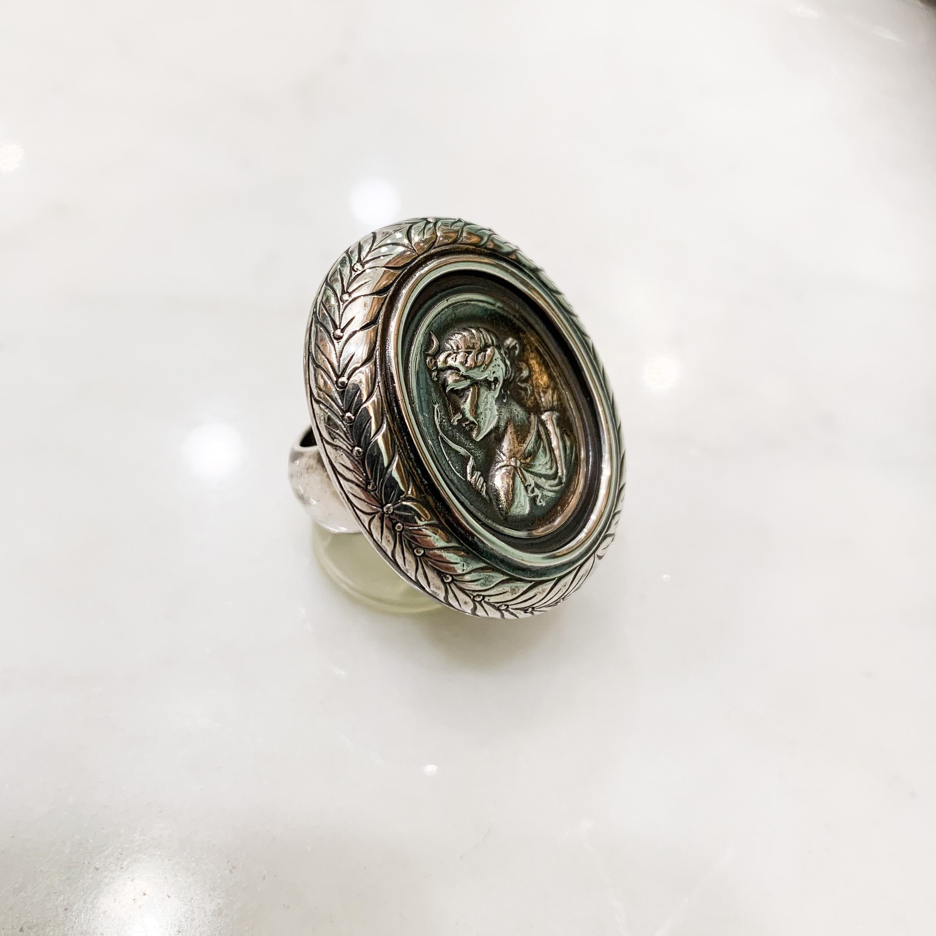 アンティークのカメオから型を起こして作った、シルバーカメオの指輪です。