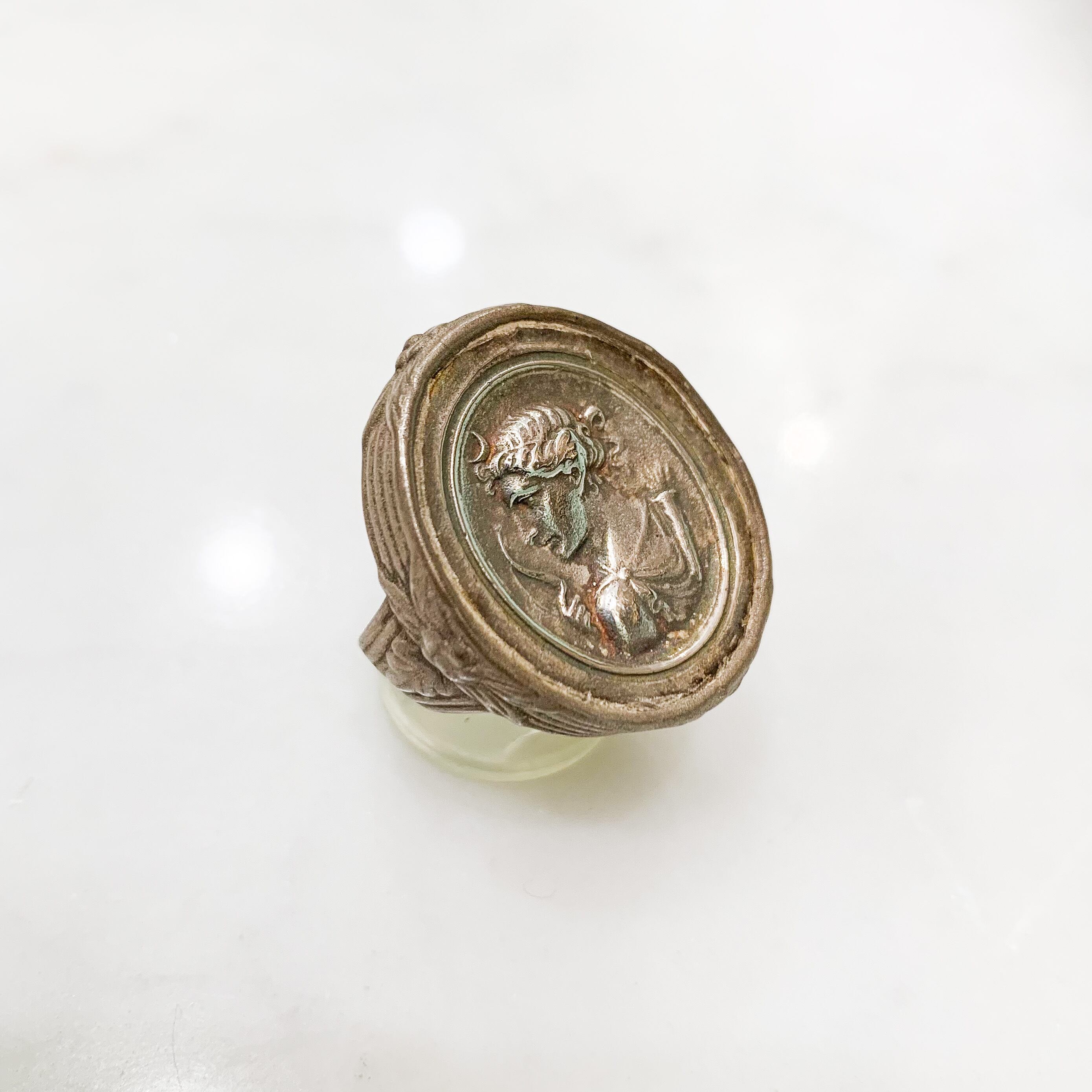 もともとはアンティークのカメオから型を起こして作っているので、モチーフはアンティークそのもの。