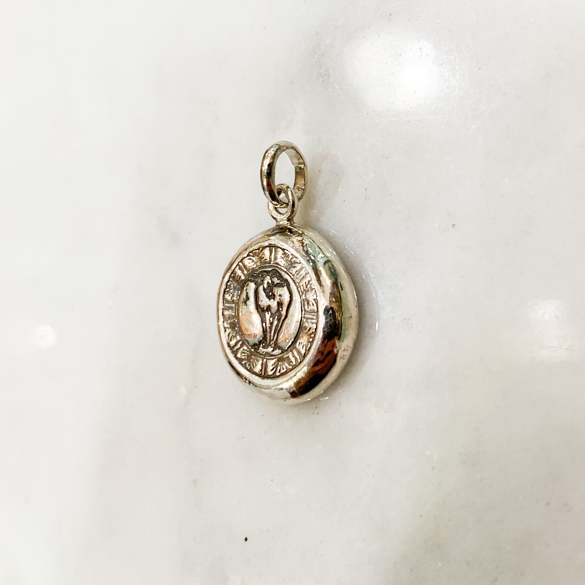 歪んだ楕円形だったり、サイドも滑らかでなかったり、ペンダントの下の部分が少しひび割れていたりするものも・・・そして王冠とAMマークの彫りの部分の色の変化、全てがすごく味わいがあります。