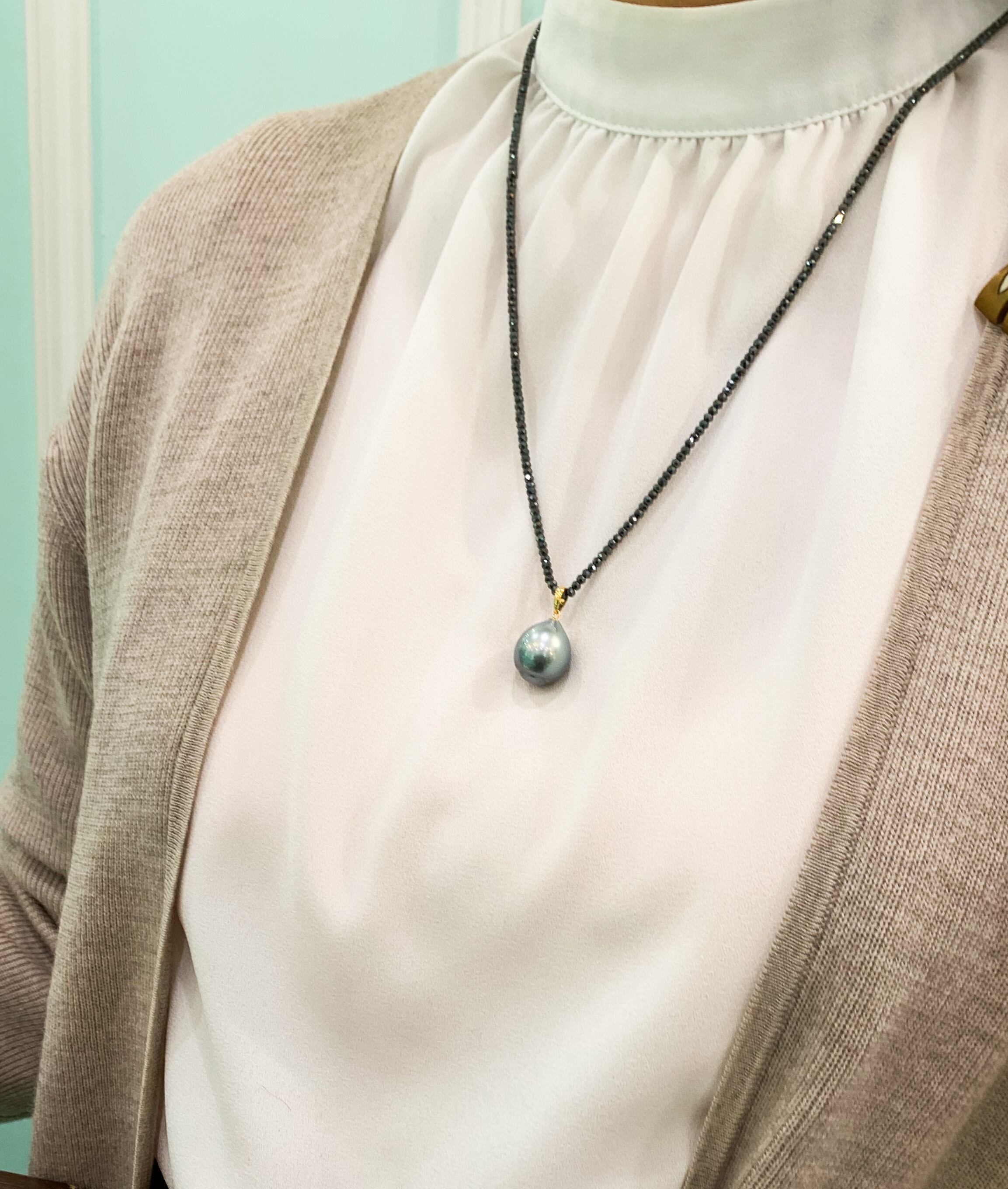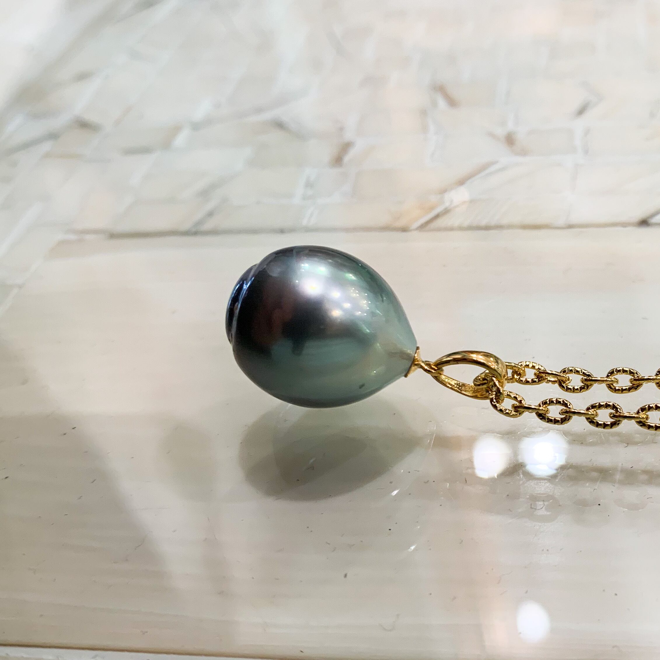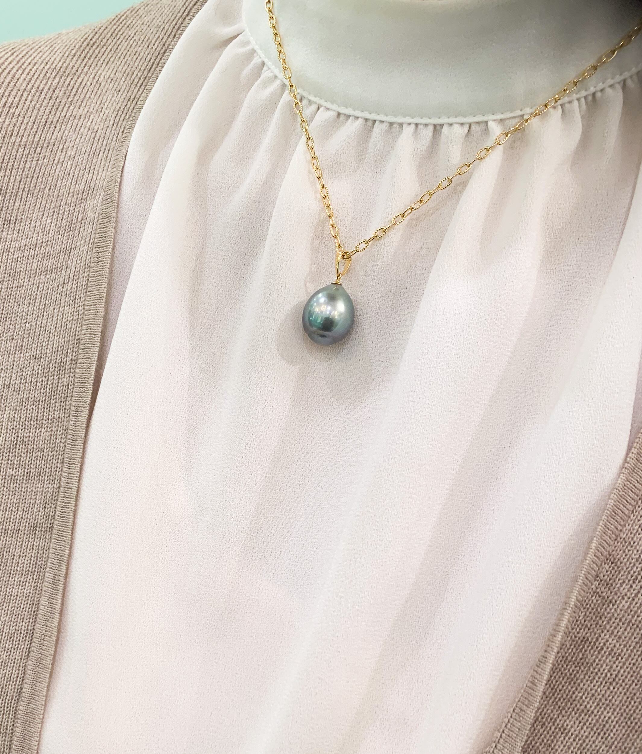 しずく形の南洋グレーパール、K18金具のペンダント(チェーン別)