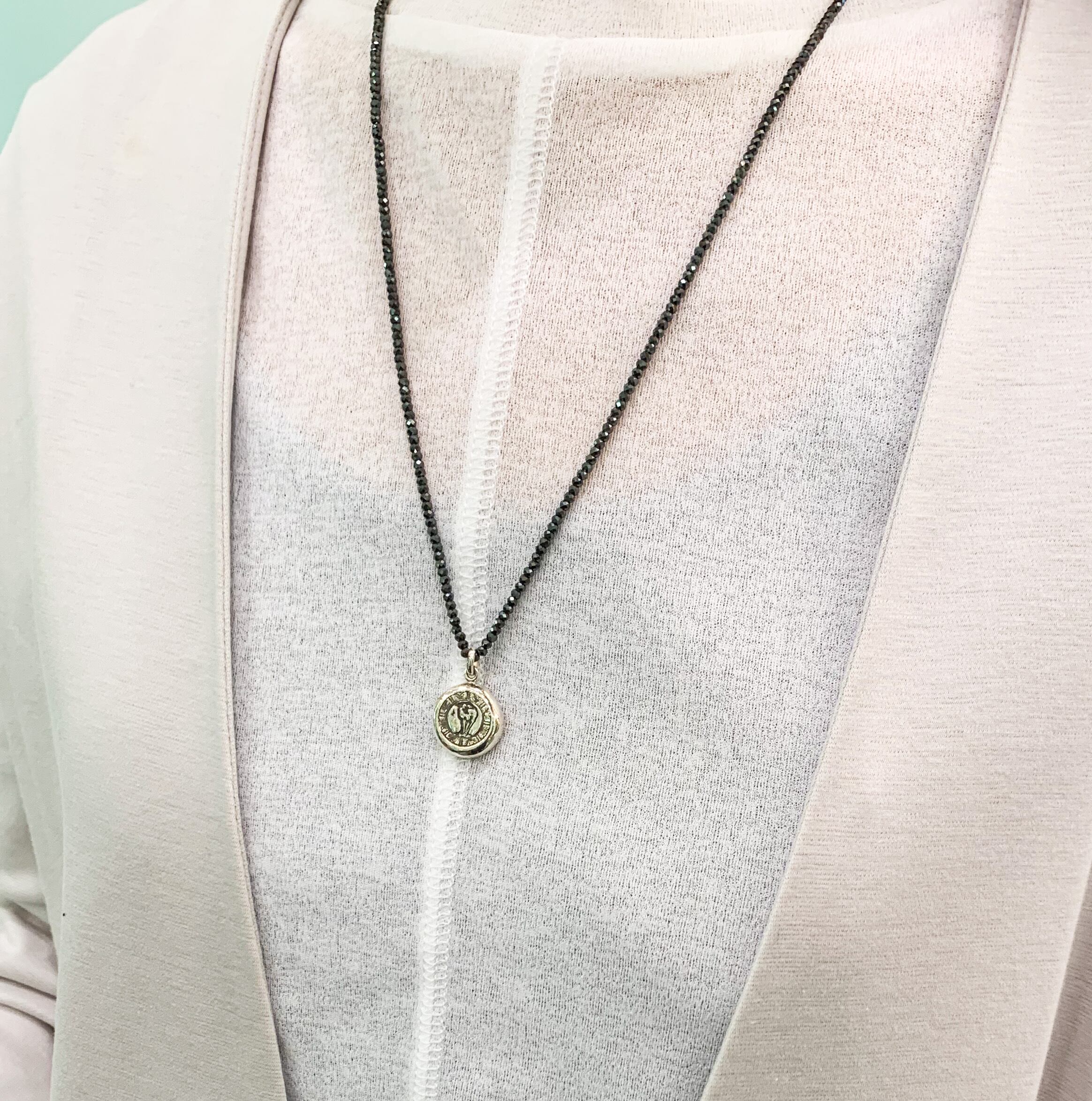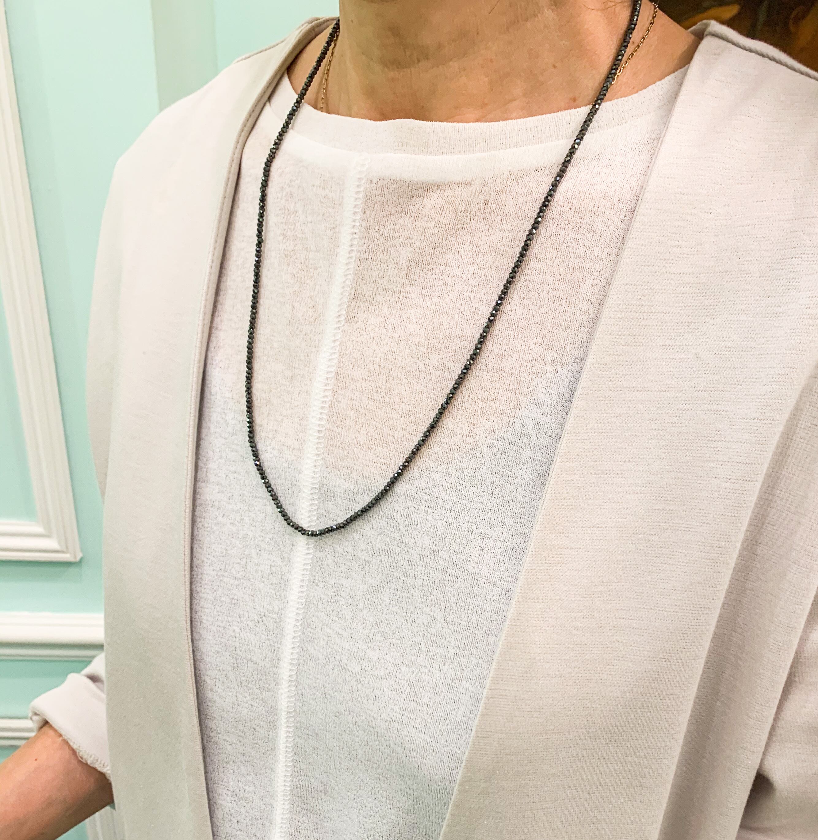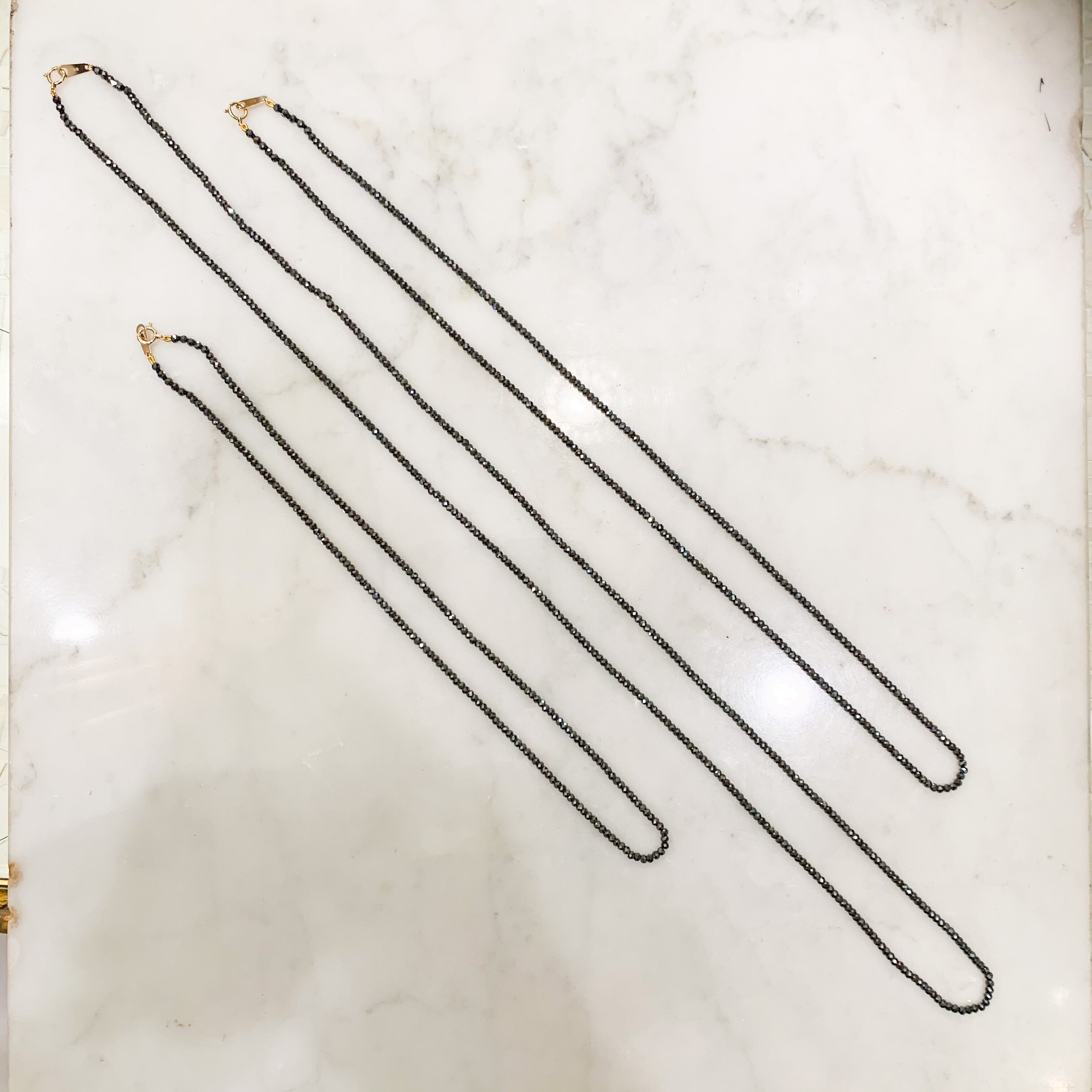直径が2㎜ちょっとあるカットが施されてキラキラと輝くヘマタイトをネックレスに仕立てました。
