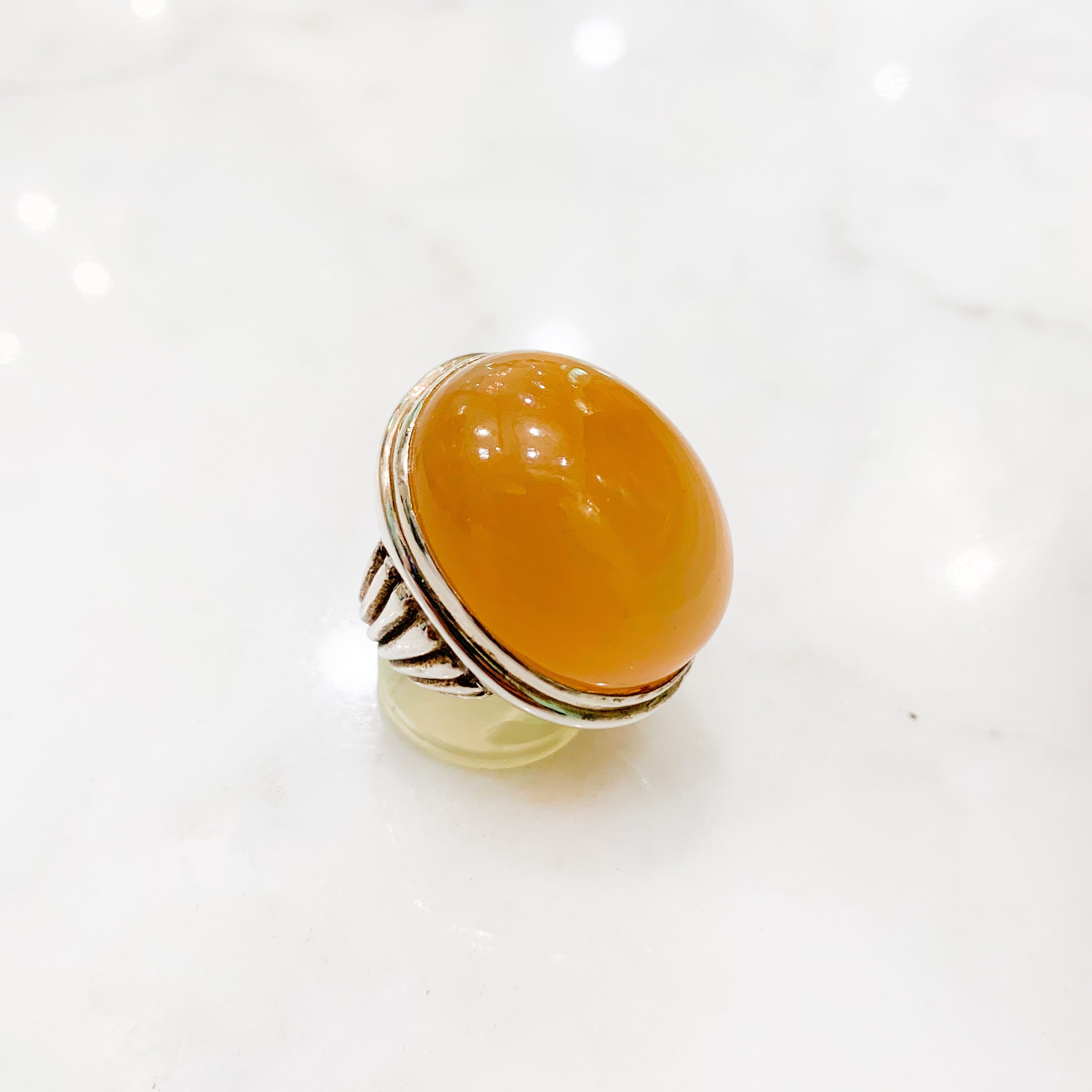 オレンジムーンストーン(62.38ct)のシンプルなボリュームシルバーリング