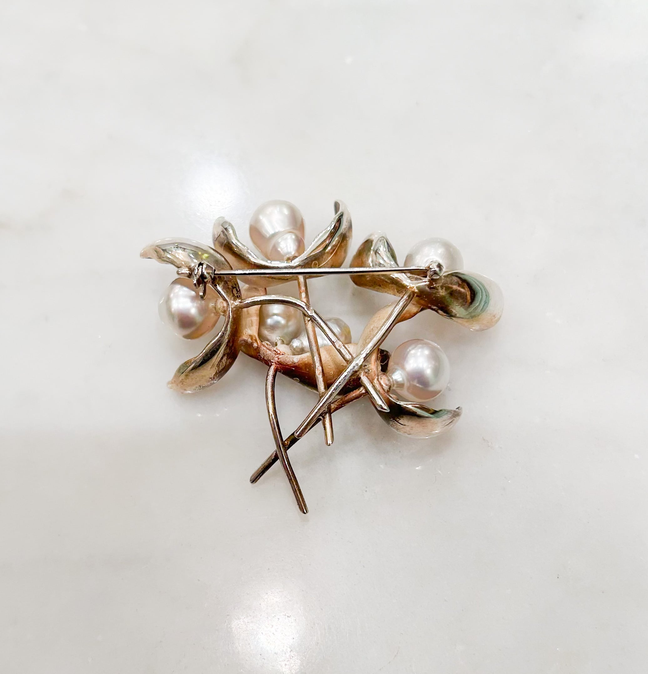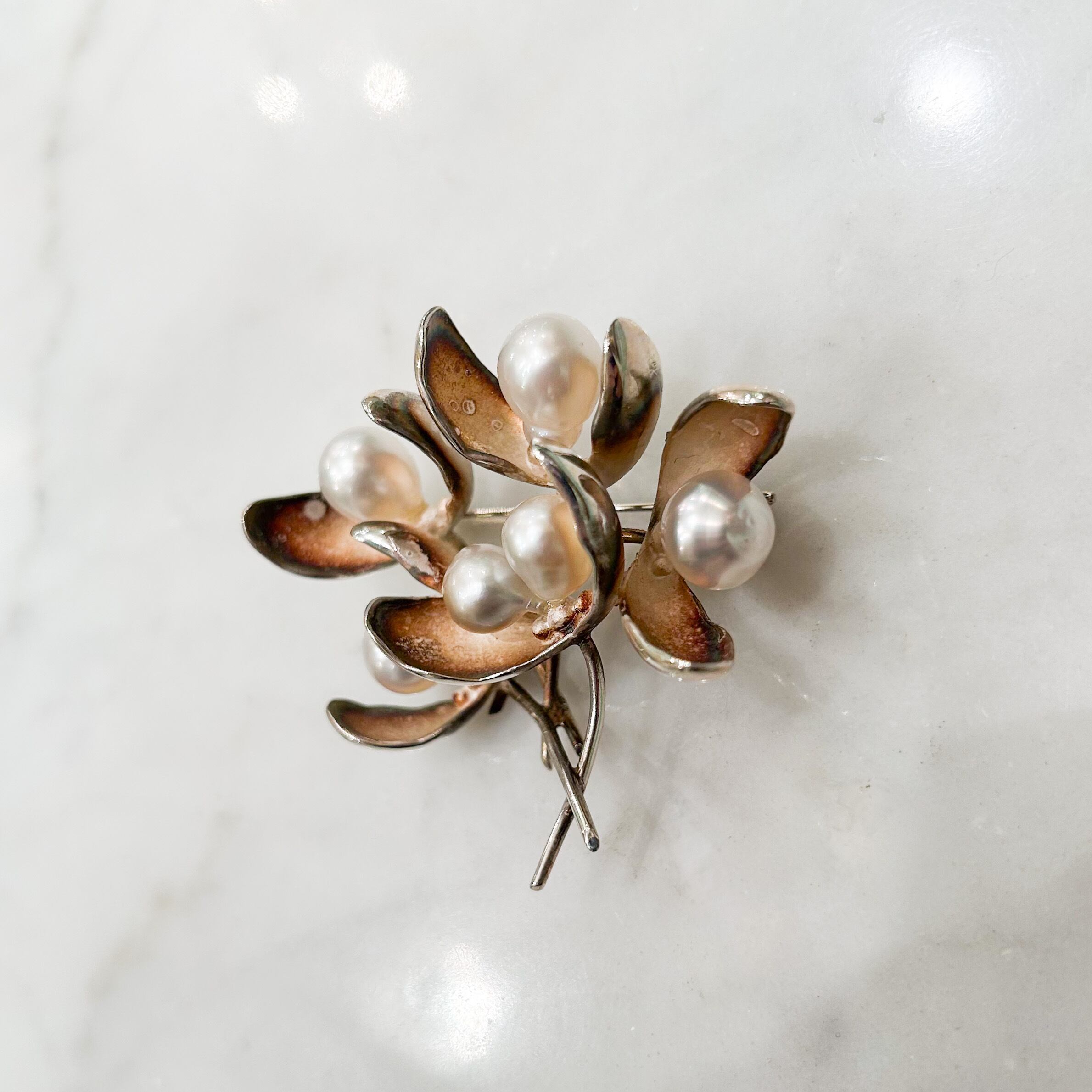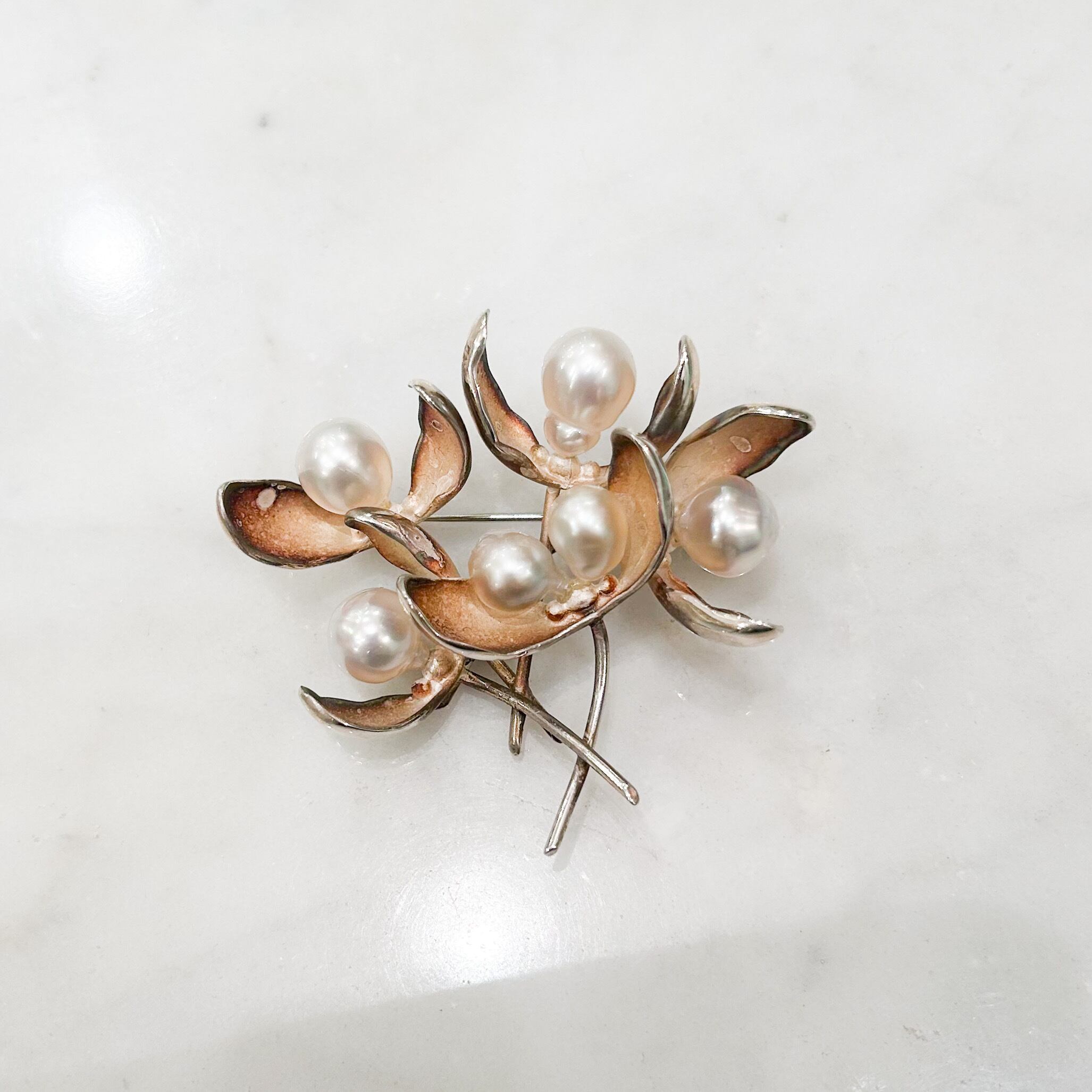シルバーと南洋真珠のヤドリギのブローチ(小)