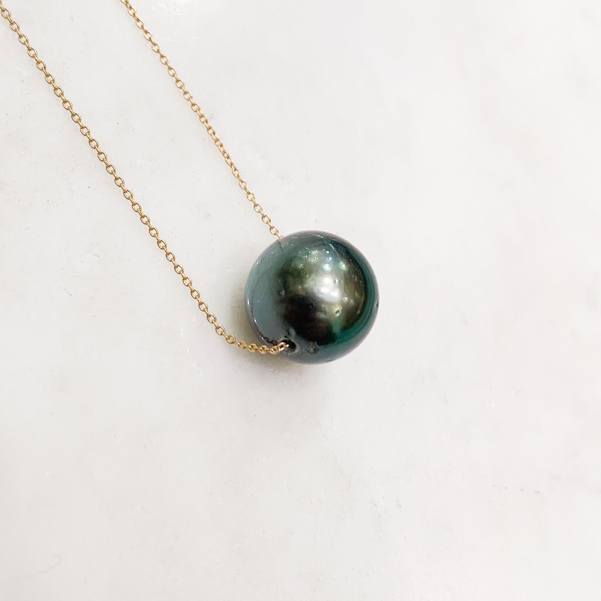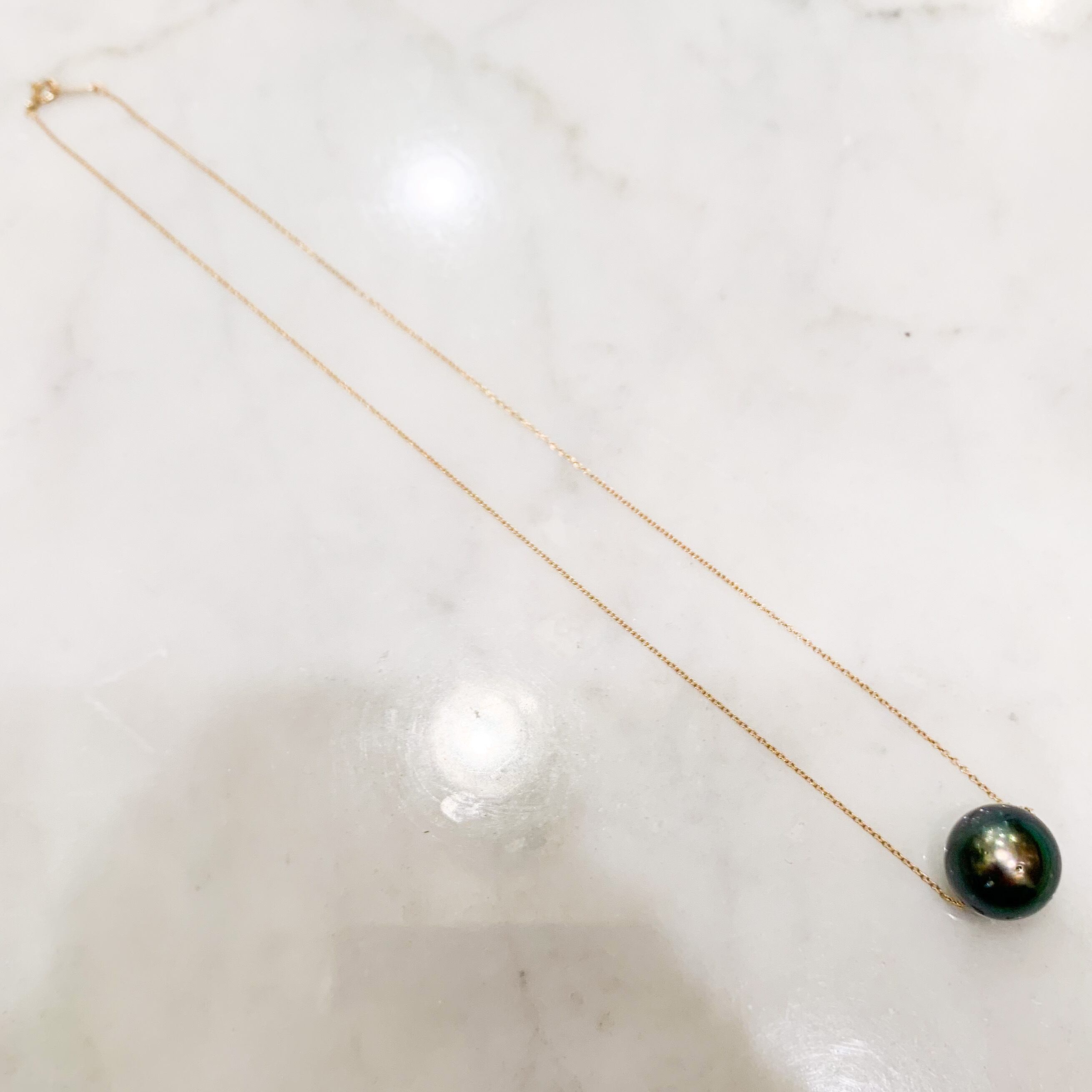 南洋黒真珠(14mm)の一粒ネックレス(10金チェーン)