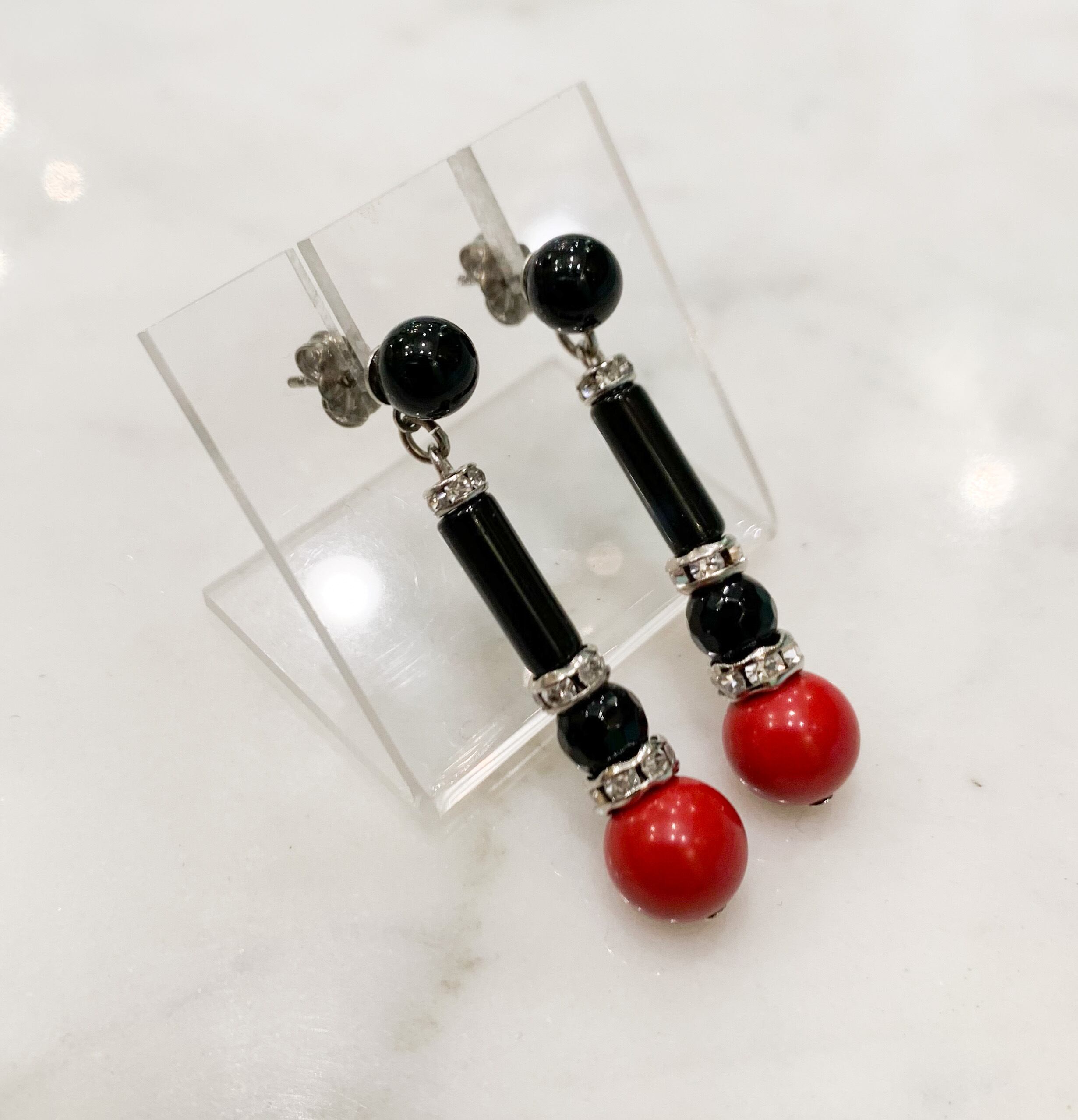 オニキスの黒と染め珊瑚の鮮やかな赤のコントラストがとても印象的。
