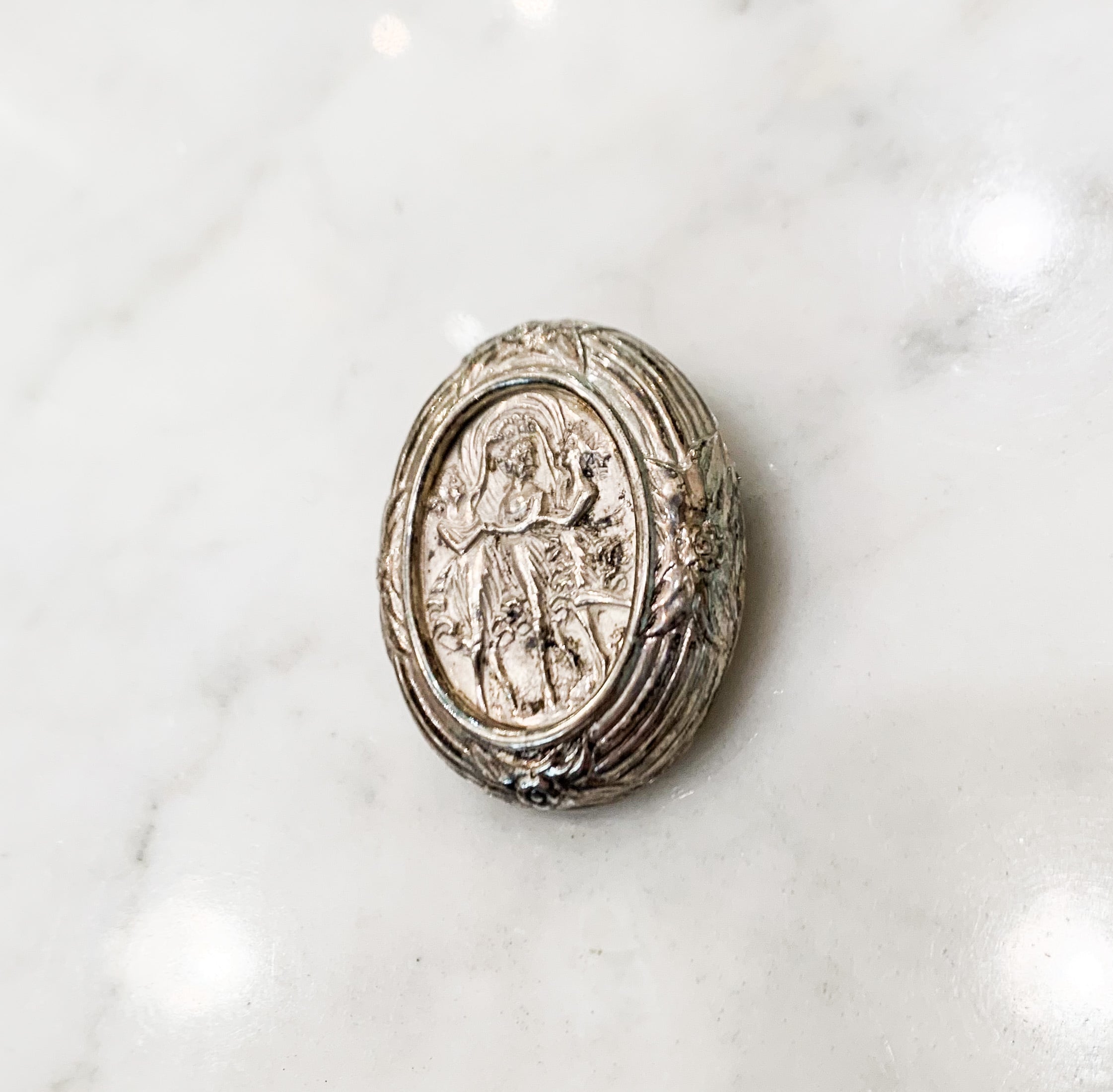 美しい立ち姿の乙女のモチーフは、女性らしくクラシカル。
