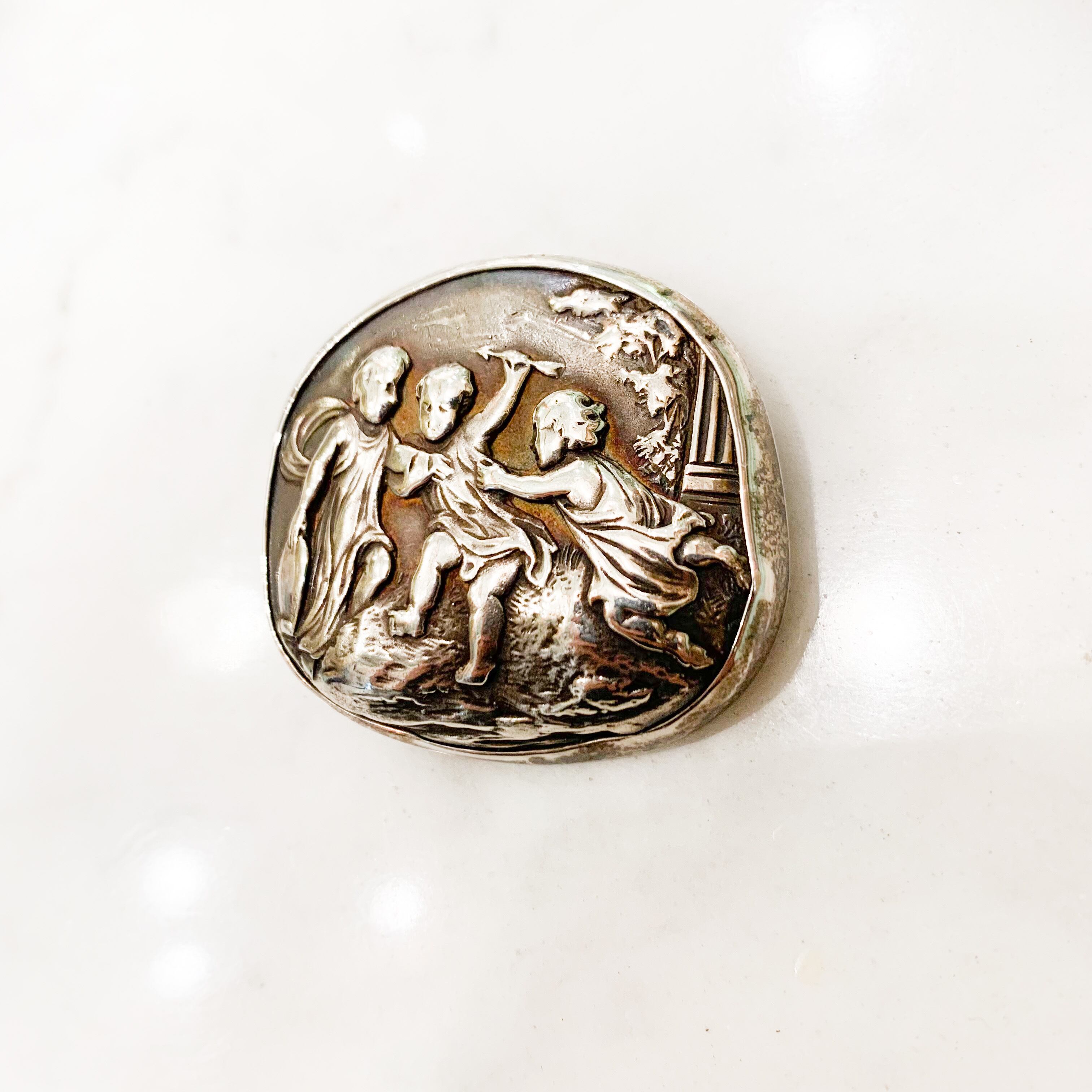 キューピッドが遊ぶモチーフのシルバーカメオブローチ