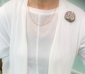 アキオモリらしい、クラシカルでありながらも個性的なブローチです。