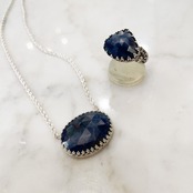 そんな大きめのサファイアのネックレスは付けるだけでなんとなく気持ちが楽しくさせられます。