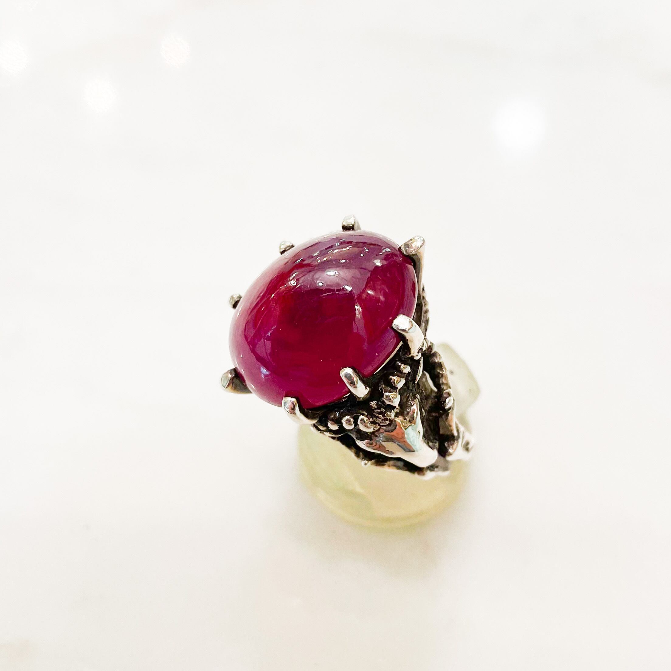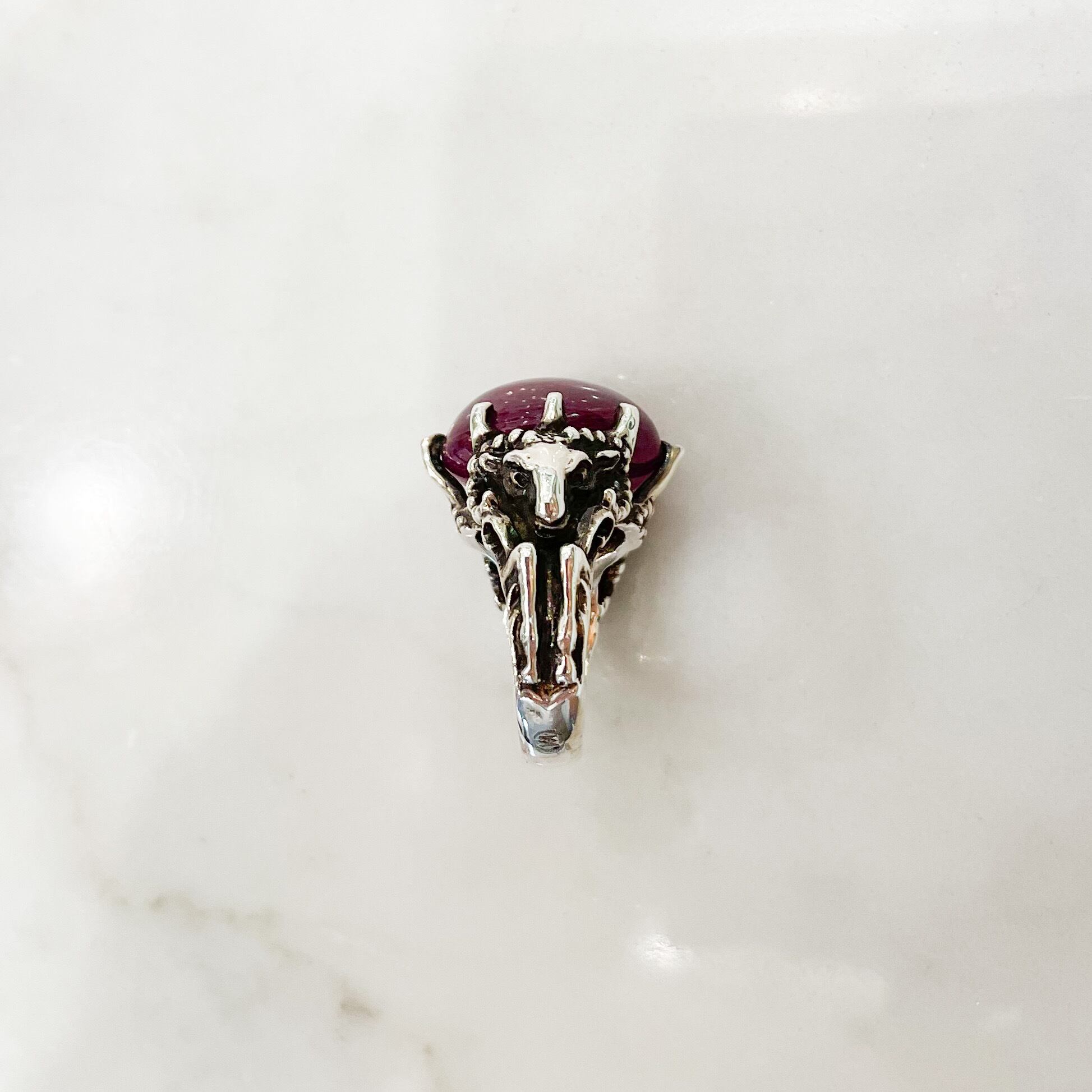 ツルッとしたルビー(31.07ct)の銀の山羊リング