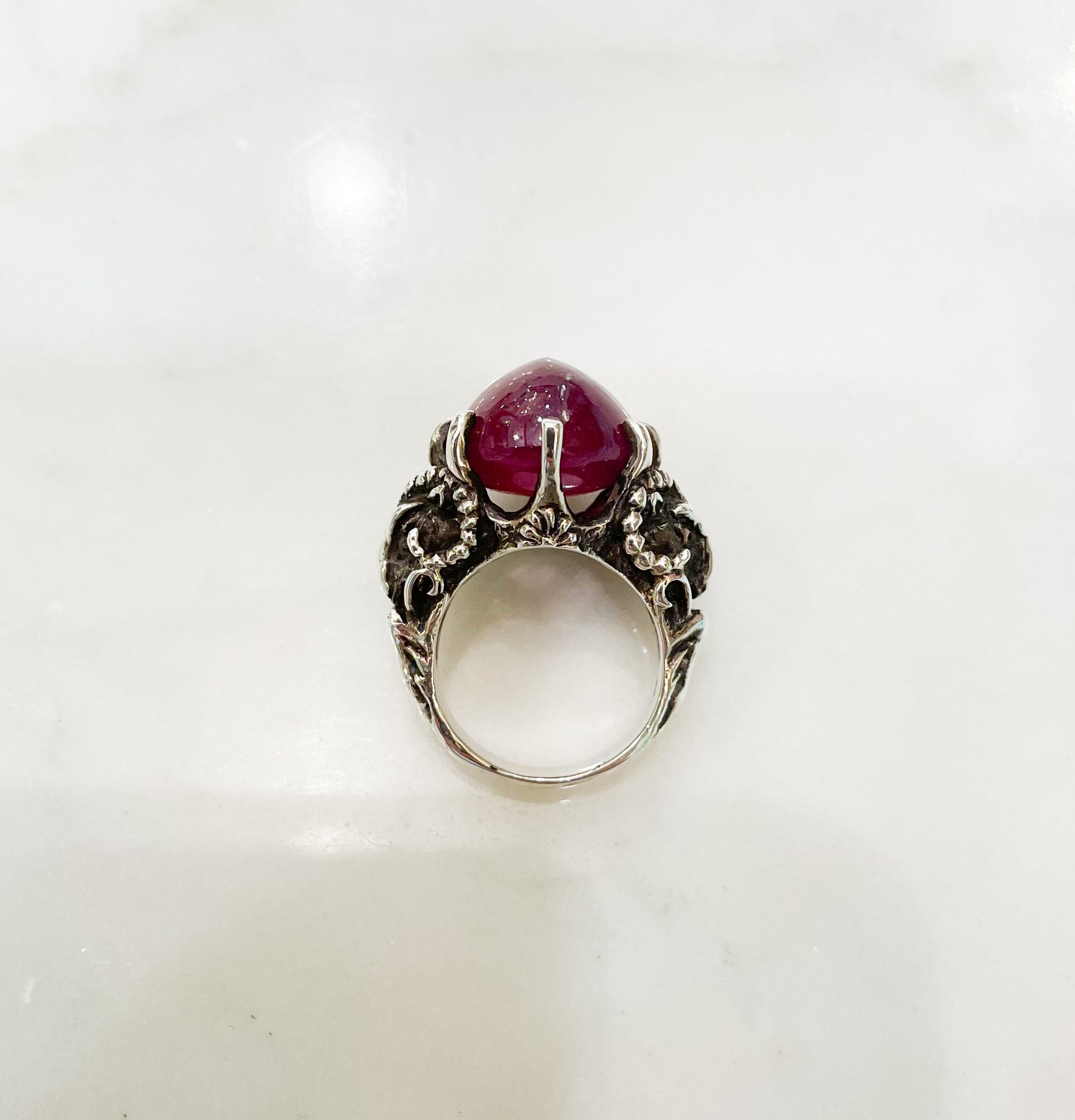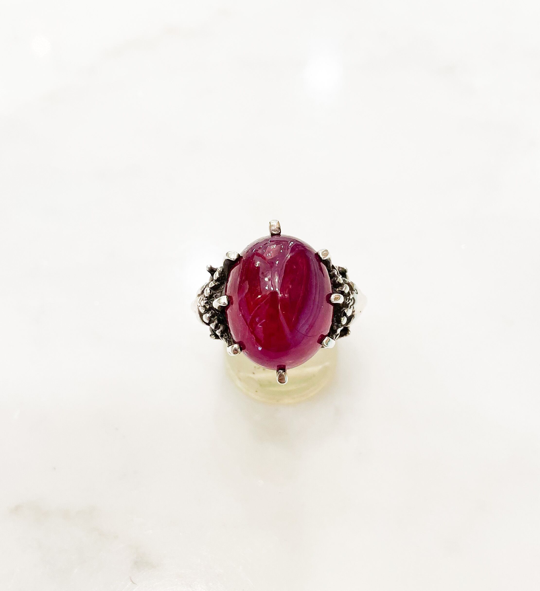 まるで古くから伝わる魔法のリングのような雰囲気もあり、ルビーの不思議な美しさが際立ちます。