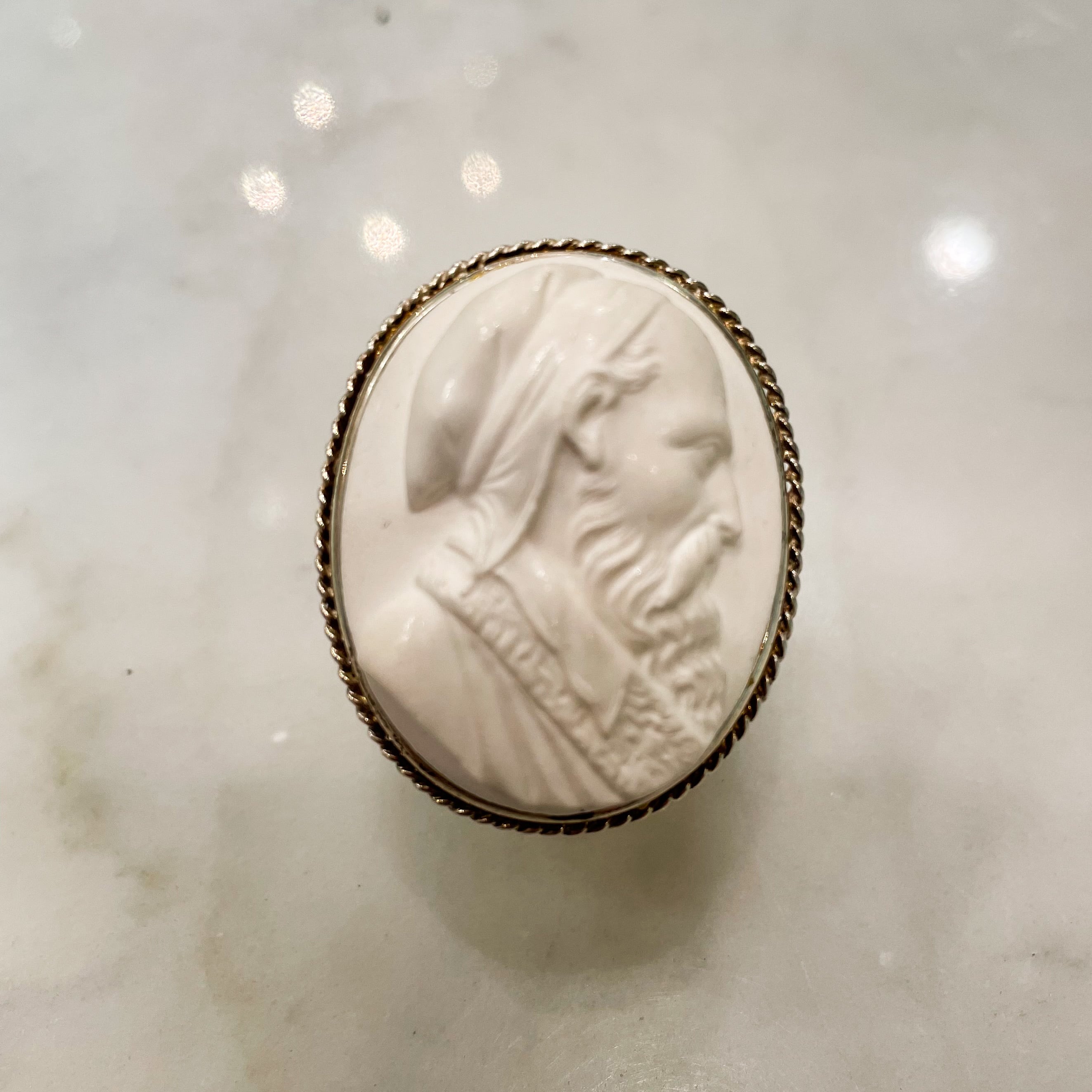 アンティークのカメオは甘さのないノーブルな顔立ちのものが多いのですが、このダヴィンチの彫りもとても美しいのです。