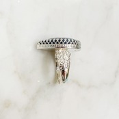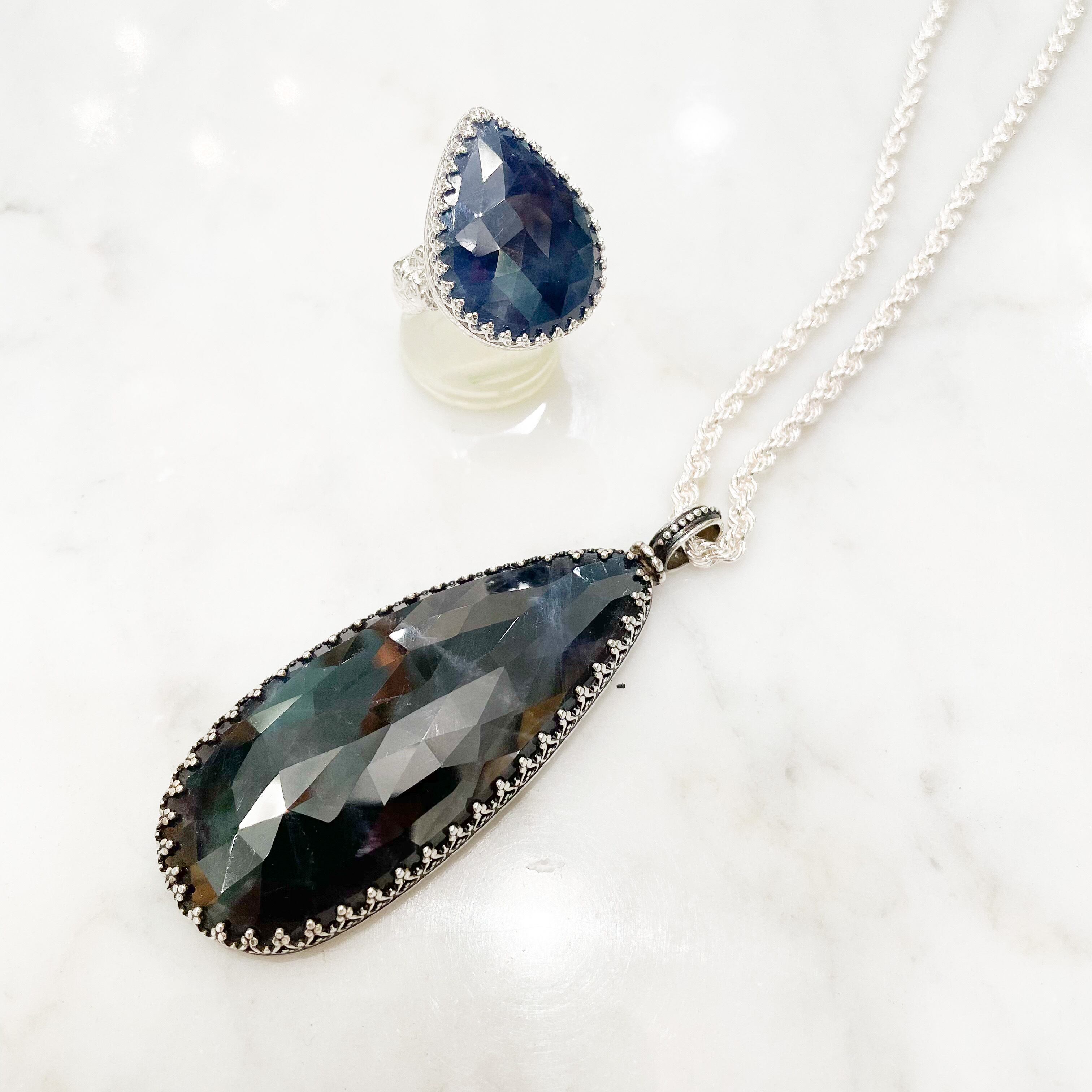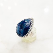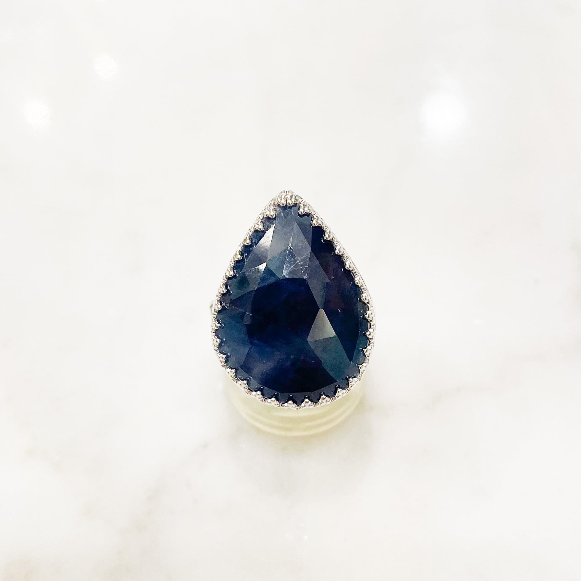 シルバーで王冠留めされたしずく型のサファイア(19.27ct)の指輪