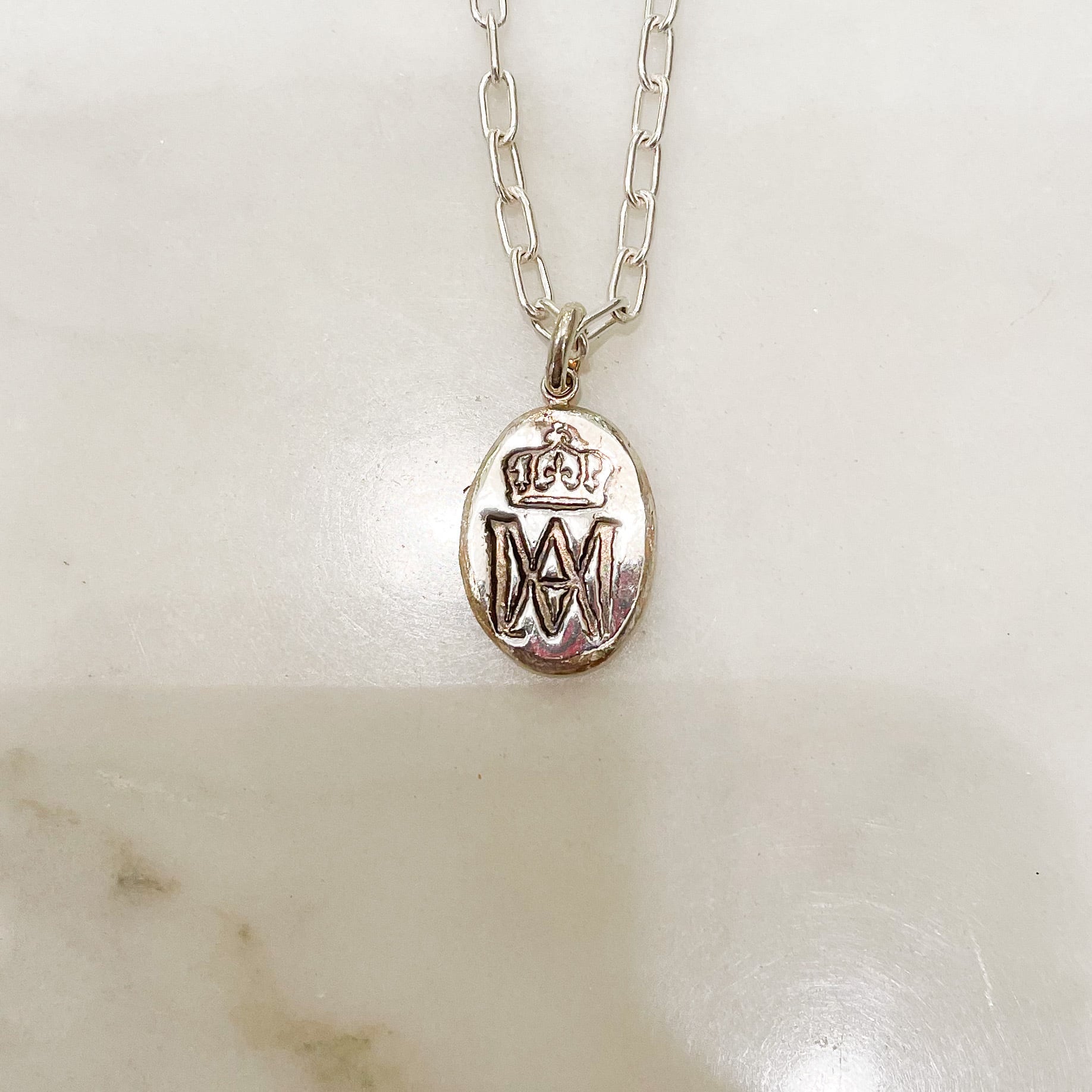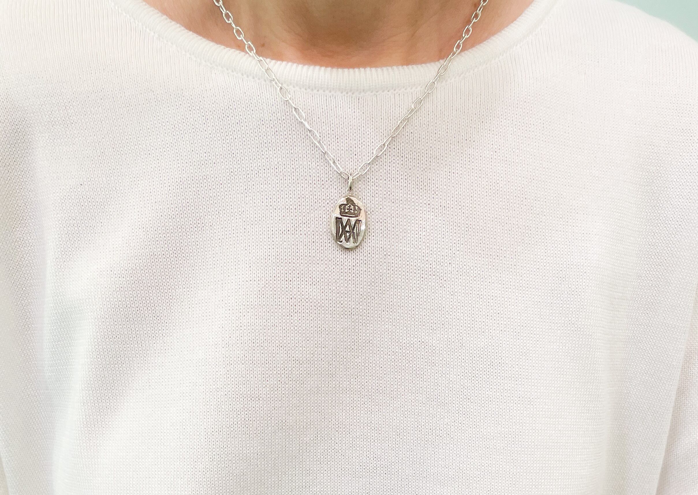 王冠とAMマークの刻印の薄いシルバーペンダント(楕円)(チェーン別)