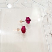 ルビーのイヤリングというと、華やかなイメージがあるのですが、丸い石ころのような綺麗すぎない形と、綺麗すぎない味のある色のルビーなので、強すぎないイメージで気軽に楽しく使えるイヤリングです。