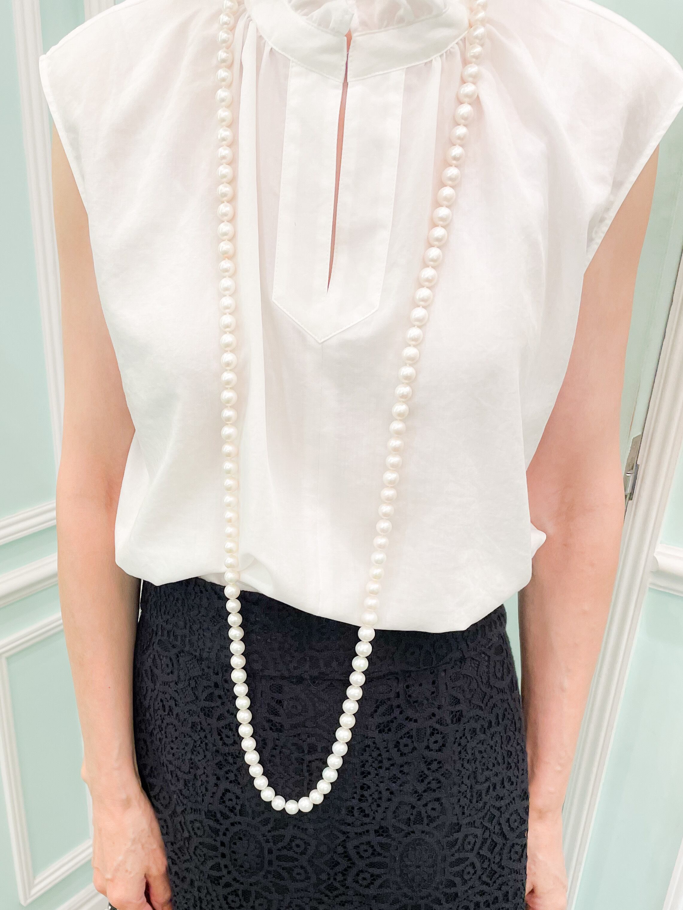 一連でザラっとかけても、この130cm超という長さがとてもお洒落!