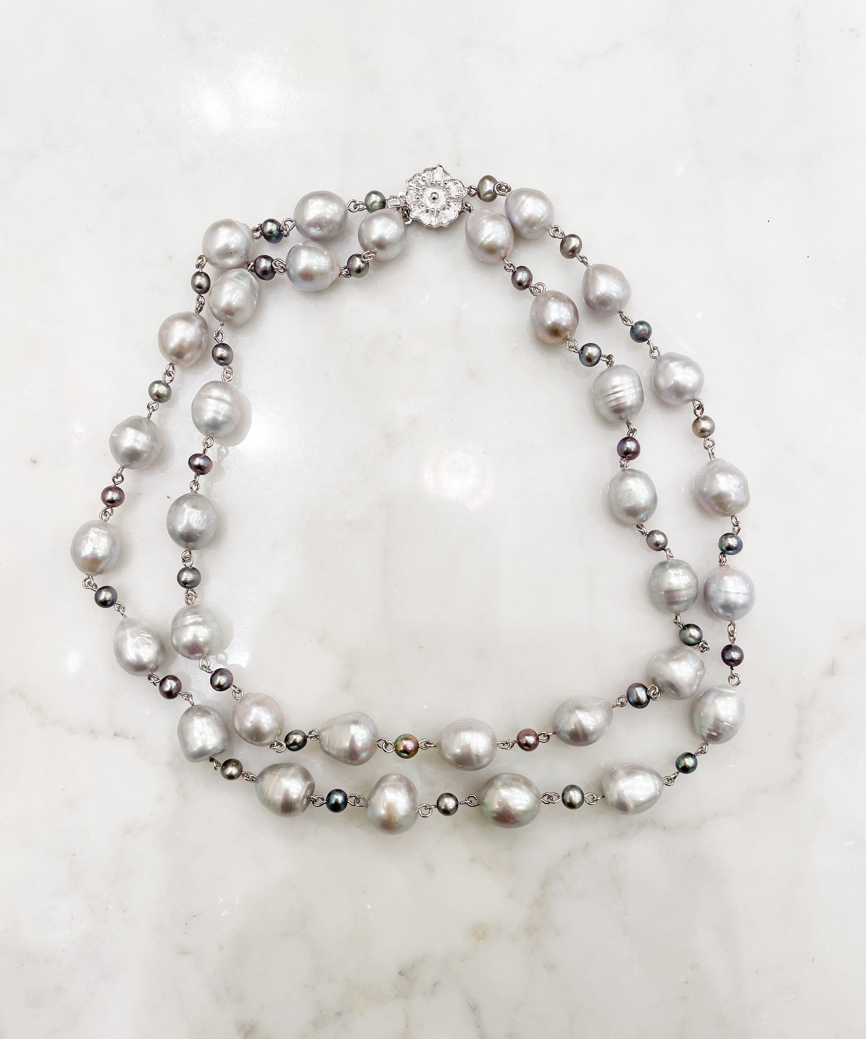 ネックレスに使われているのは、濃いグレーのパ-ルではなく、ふわっと明るいグレーのパールです。