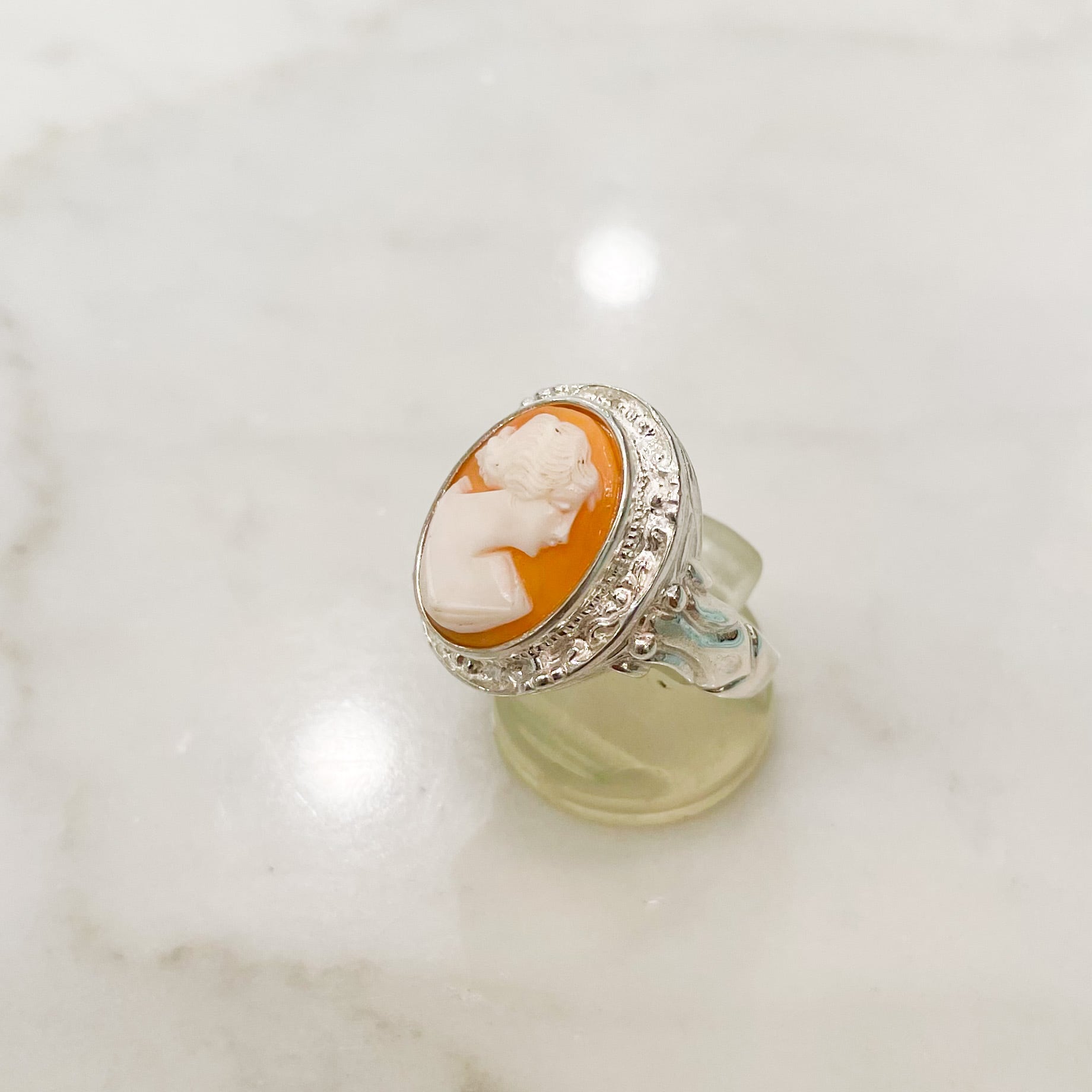 アンティークカメオの模様付きフレームのシルバーリング(サイズ直し不可)