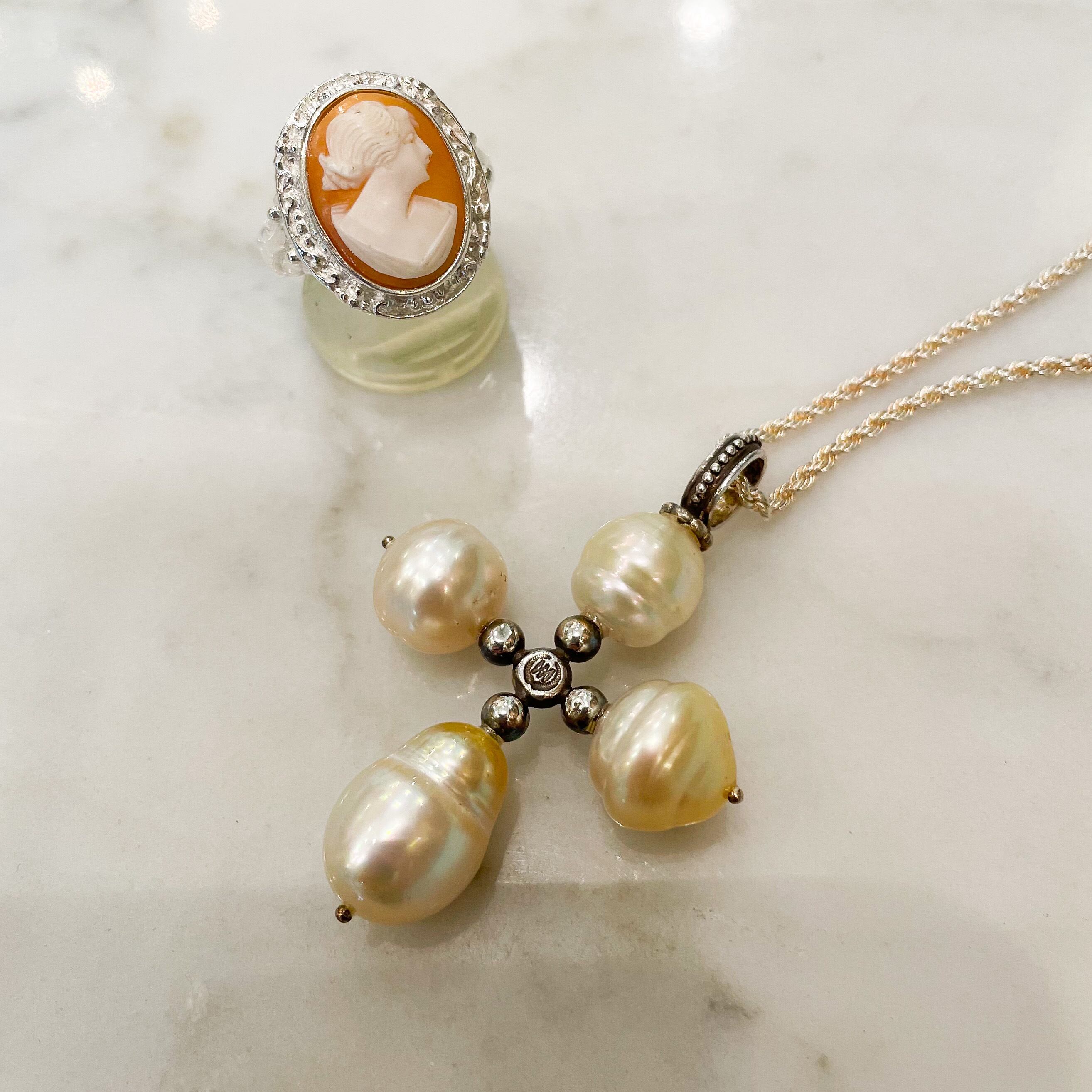 アンティークのカメオはモチーフが女性でも甘すぎる印象にならず、どこかノーブル。