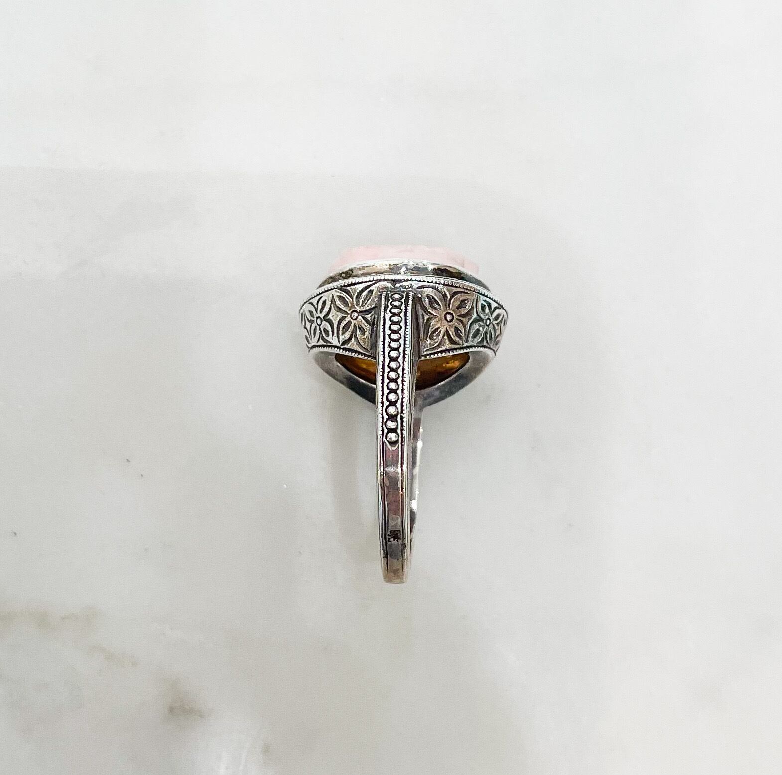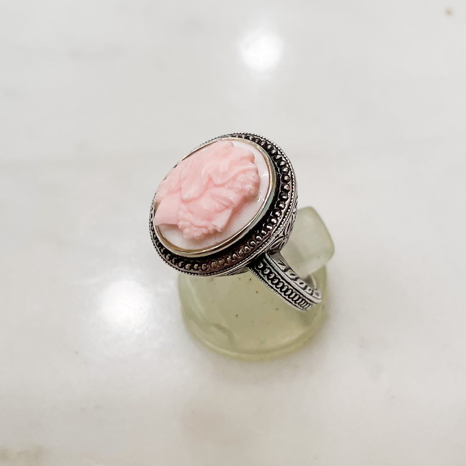 アンティークのピンクシェルカメオのシルバーリング(サイズ直し不可)