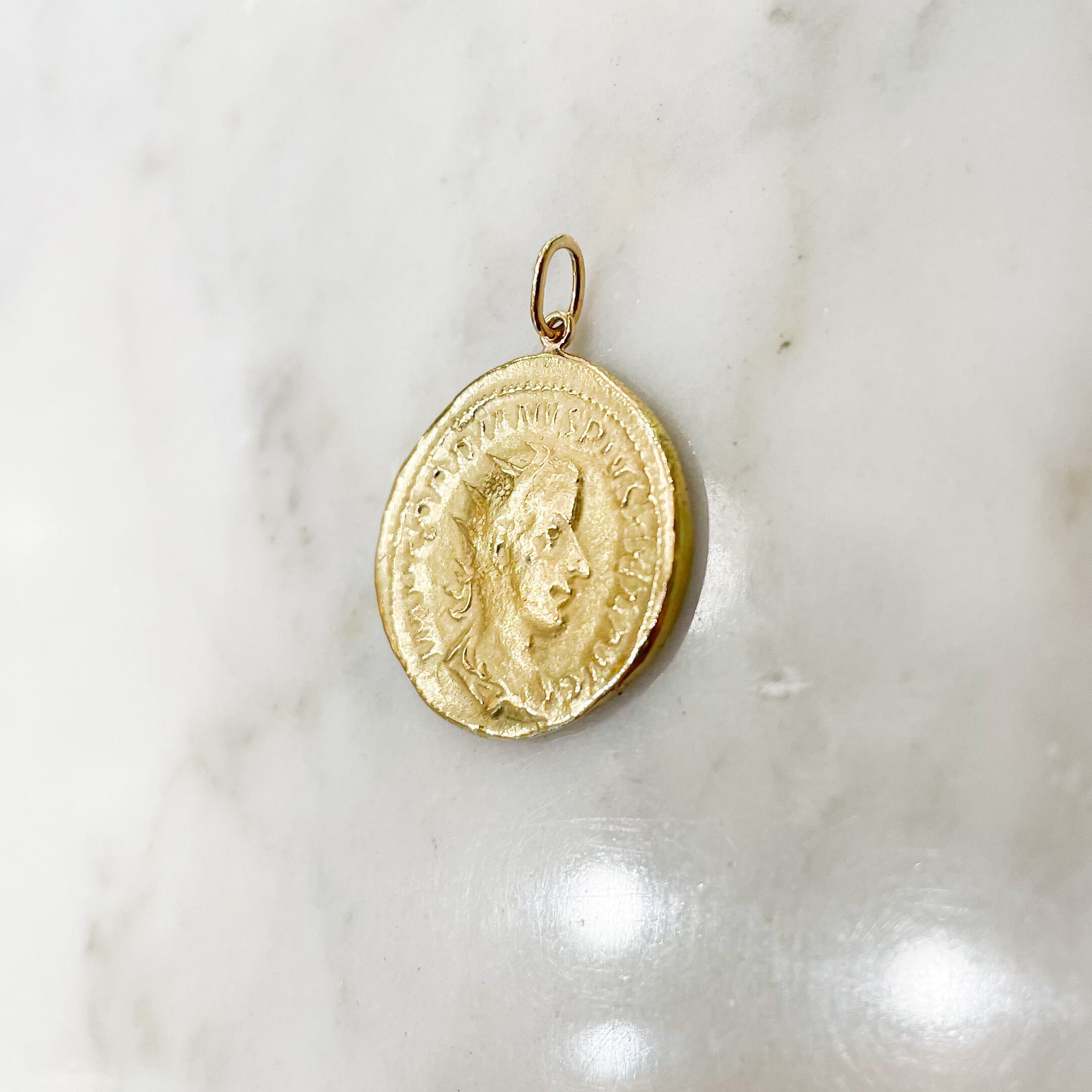 表裏どちらにもデザインのある古代のコインのような雰囲気を壊すことのない、シンプルなカンを付けて、ペンダントにしてみました!