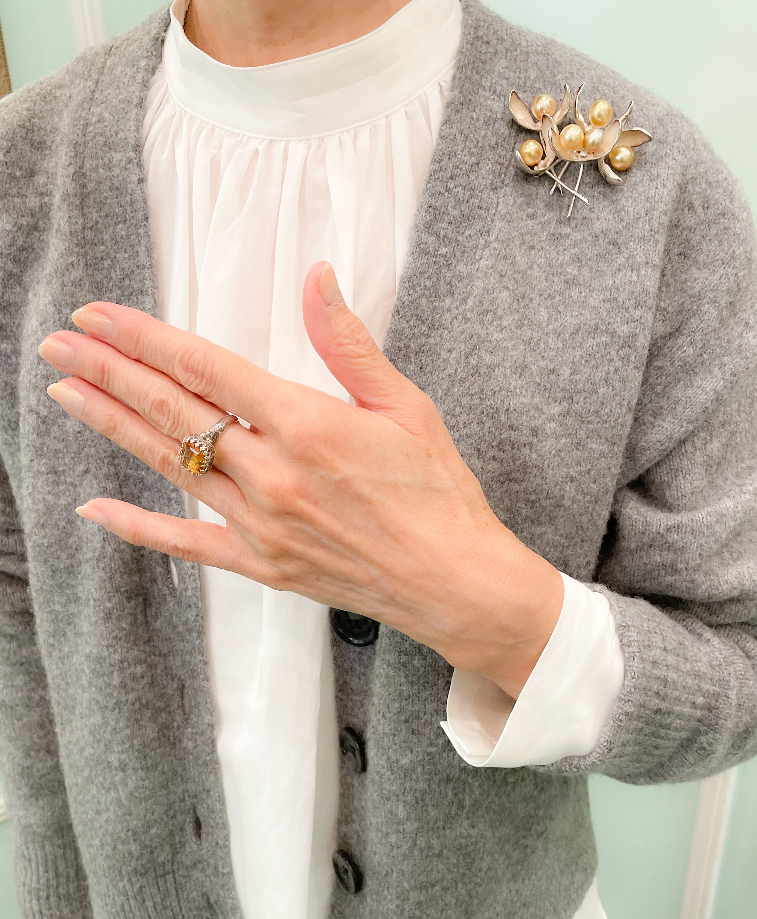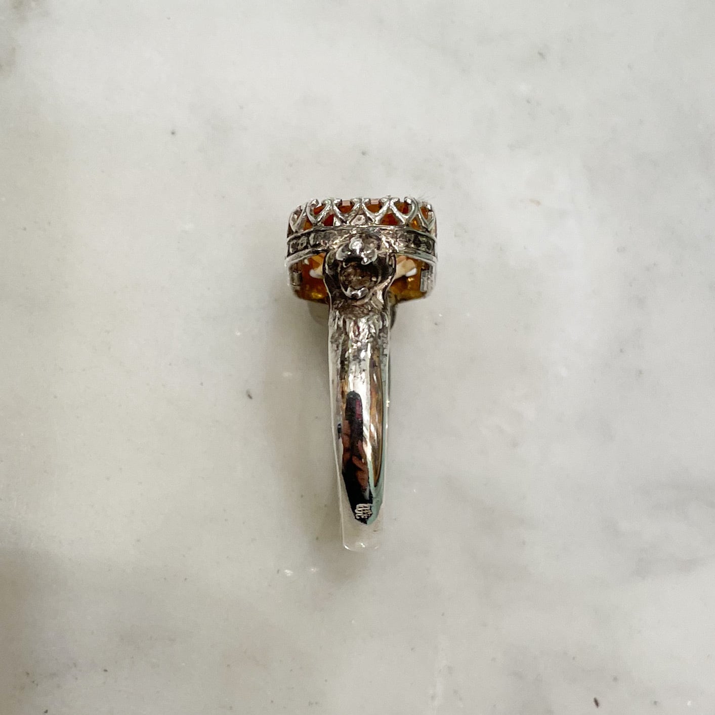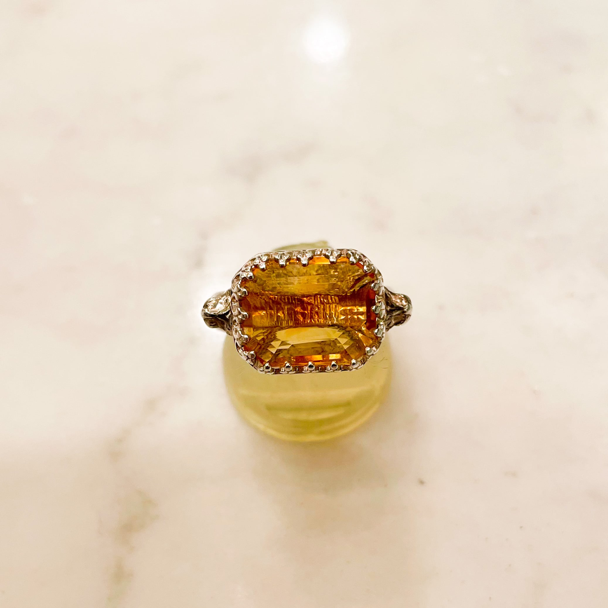 その上にティアラのような繊細な爪で留められた黄金色のシトリンをセッティングした新しいシルバーリングです。