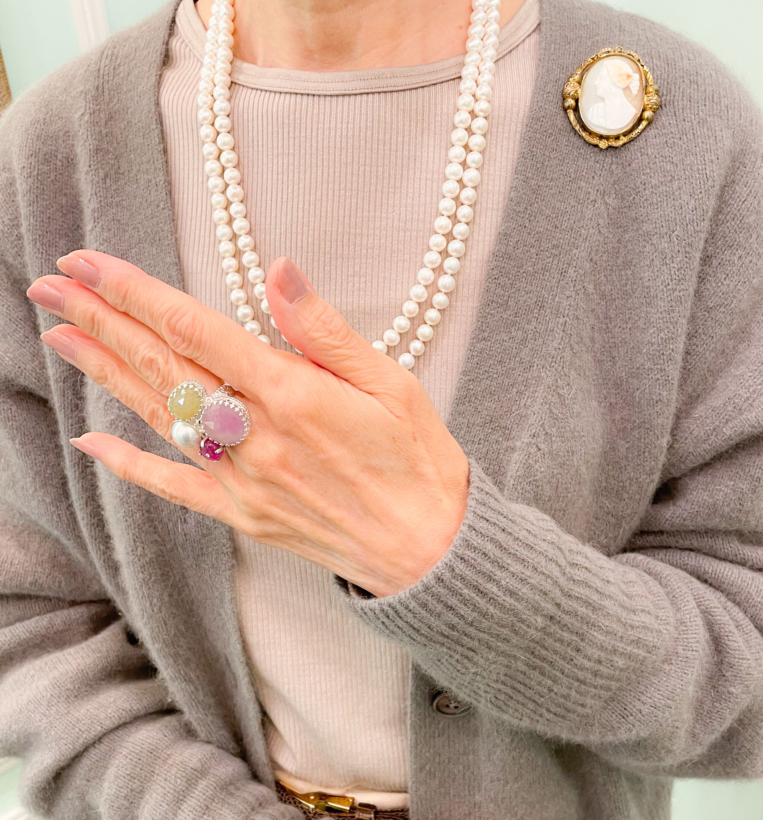 明るいトーンの石ばかりなので手元からカラフルな明るさをプラスしてくれます。