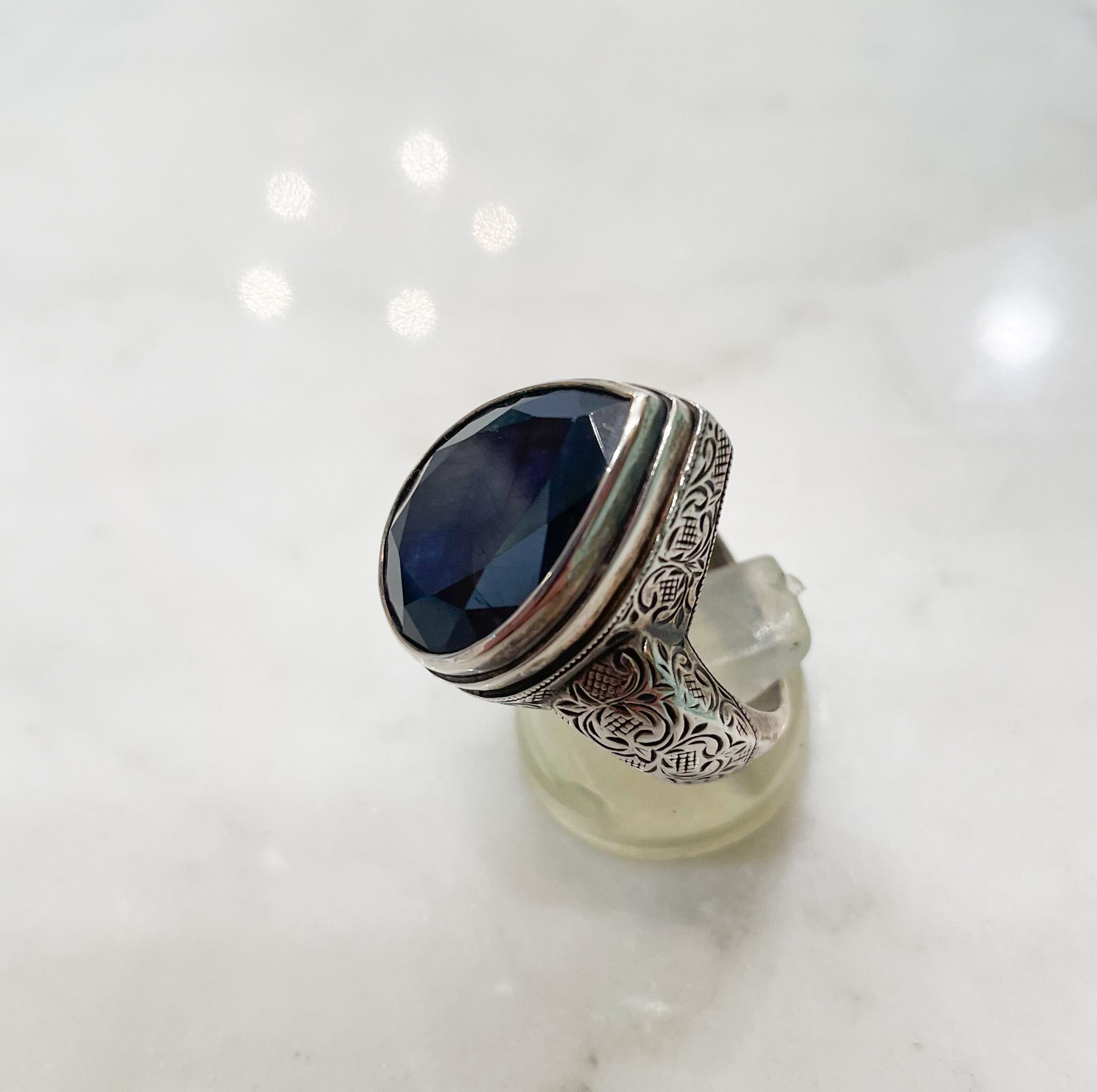 しずく型のサファイア(22.4ct)のカチッとしたシルバーリング