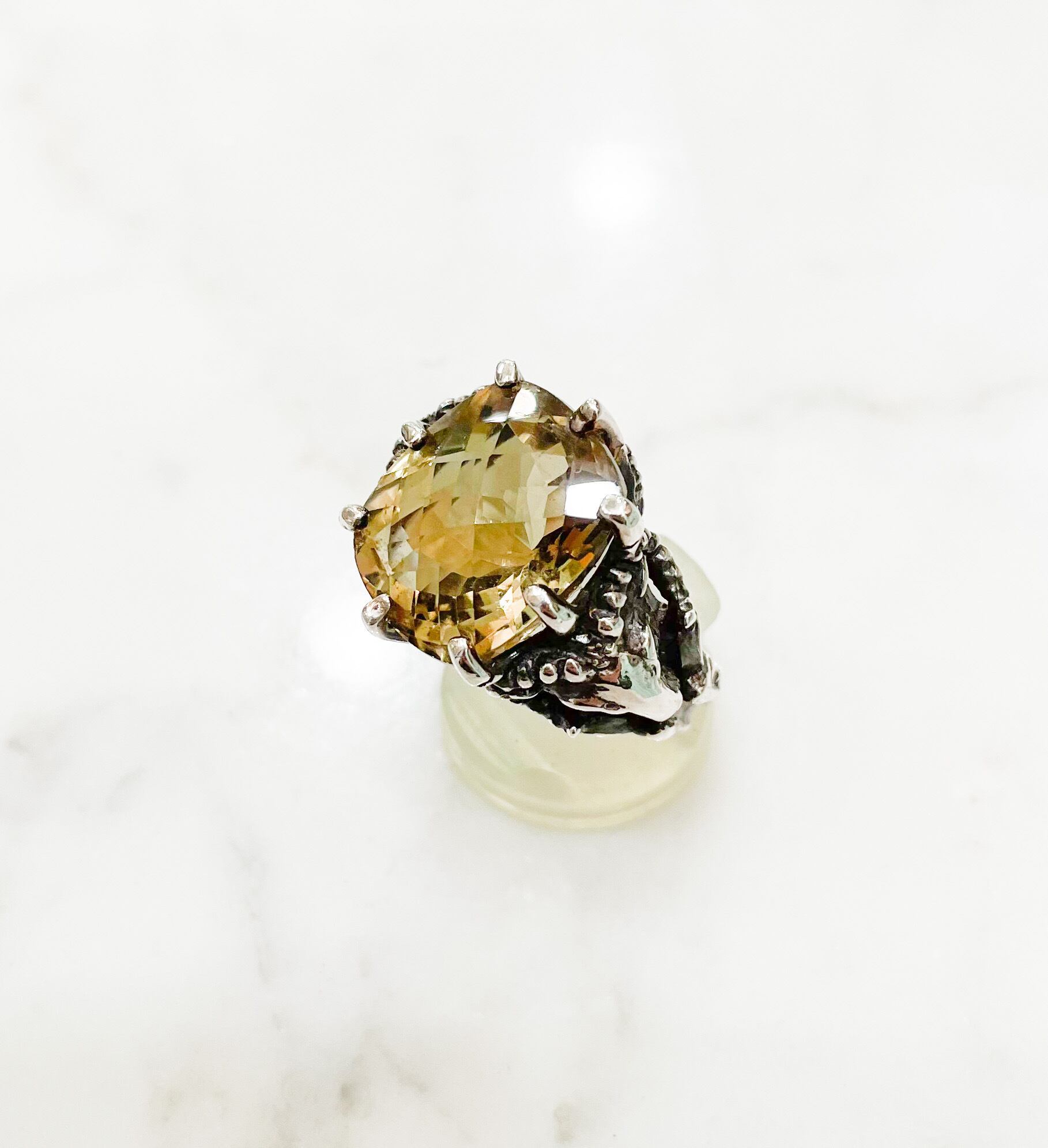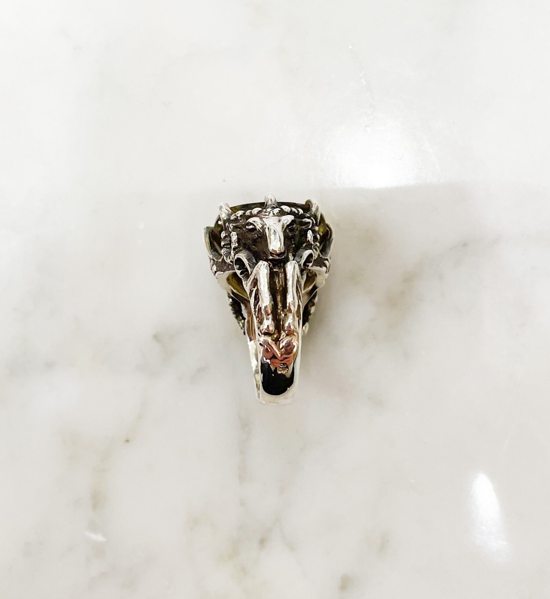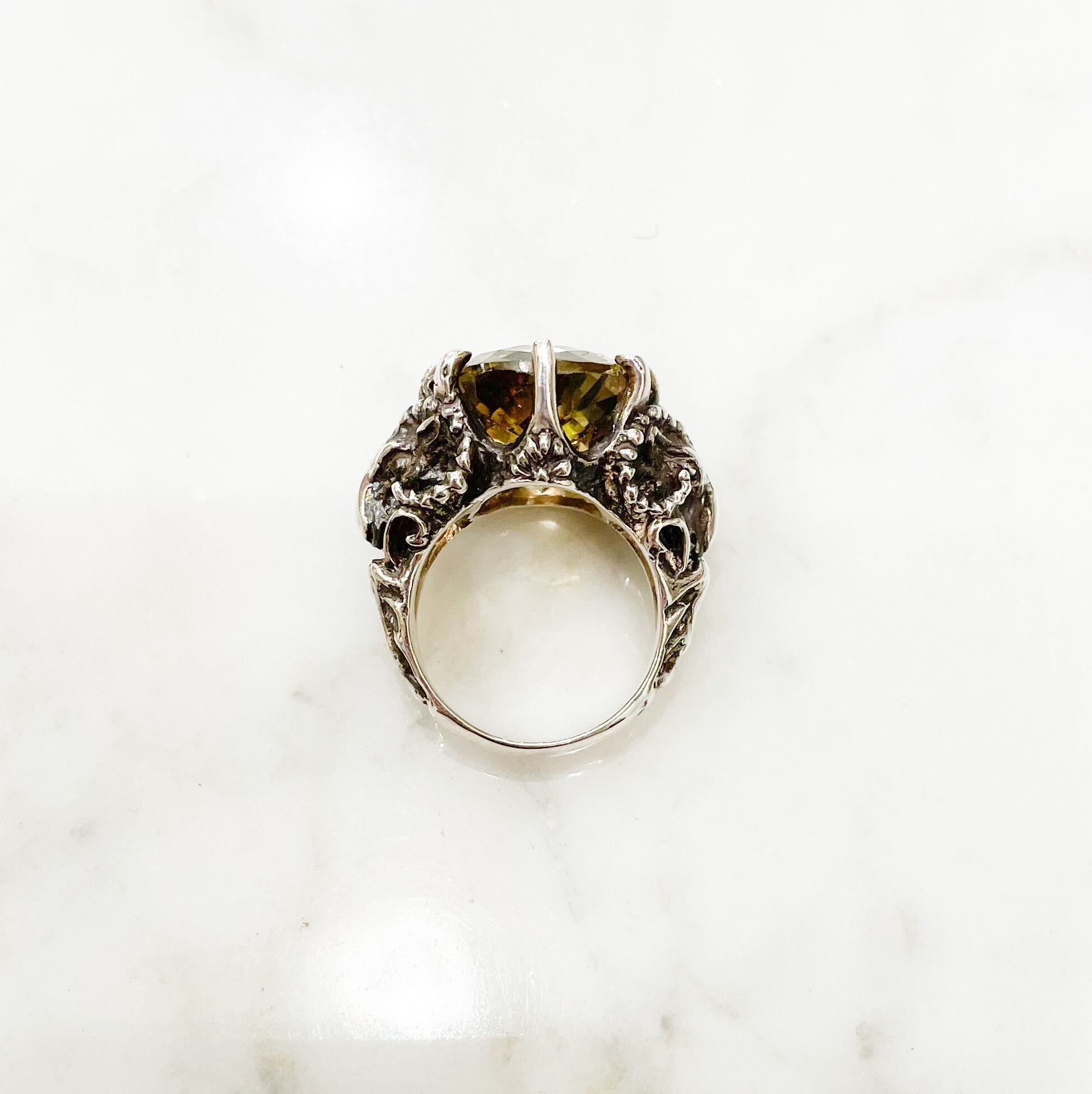 レモンクォーツ(15.93ct)の銀の山羊リング