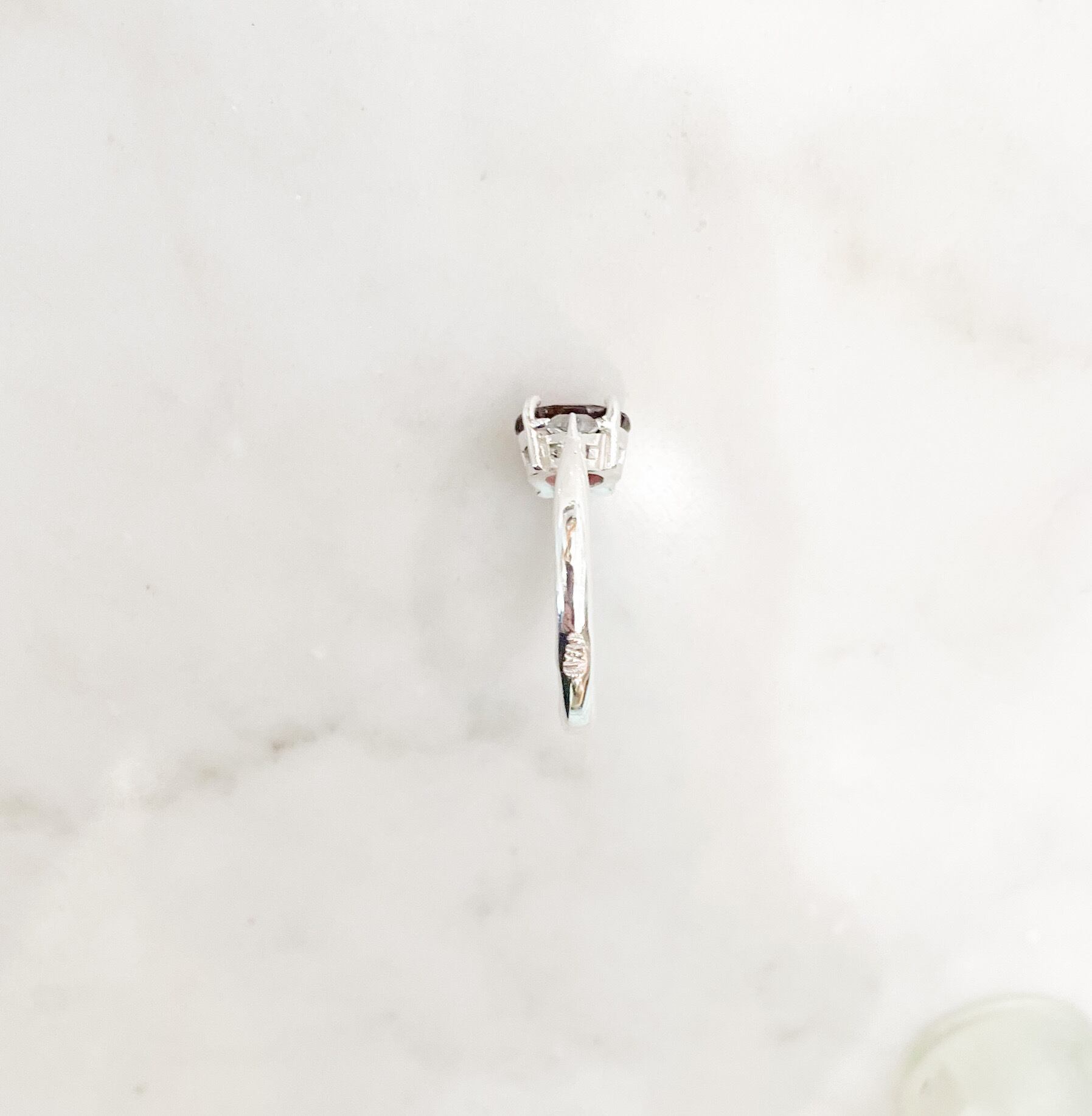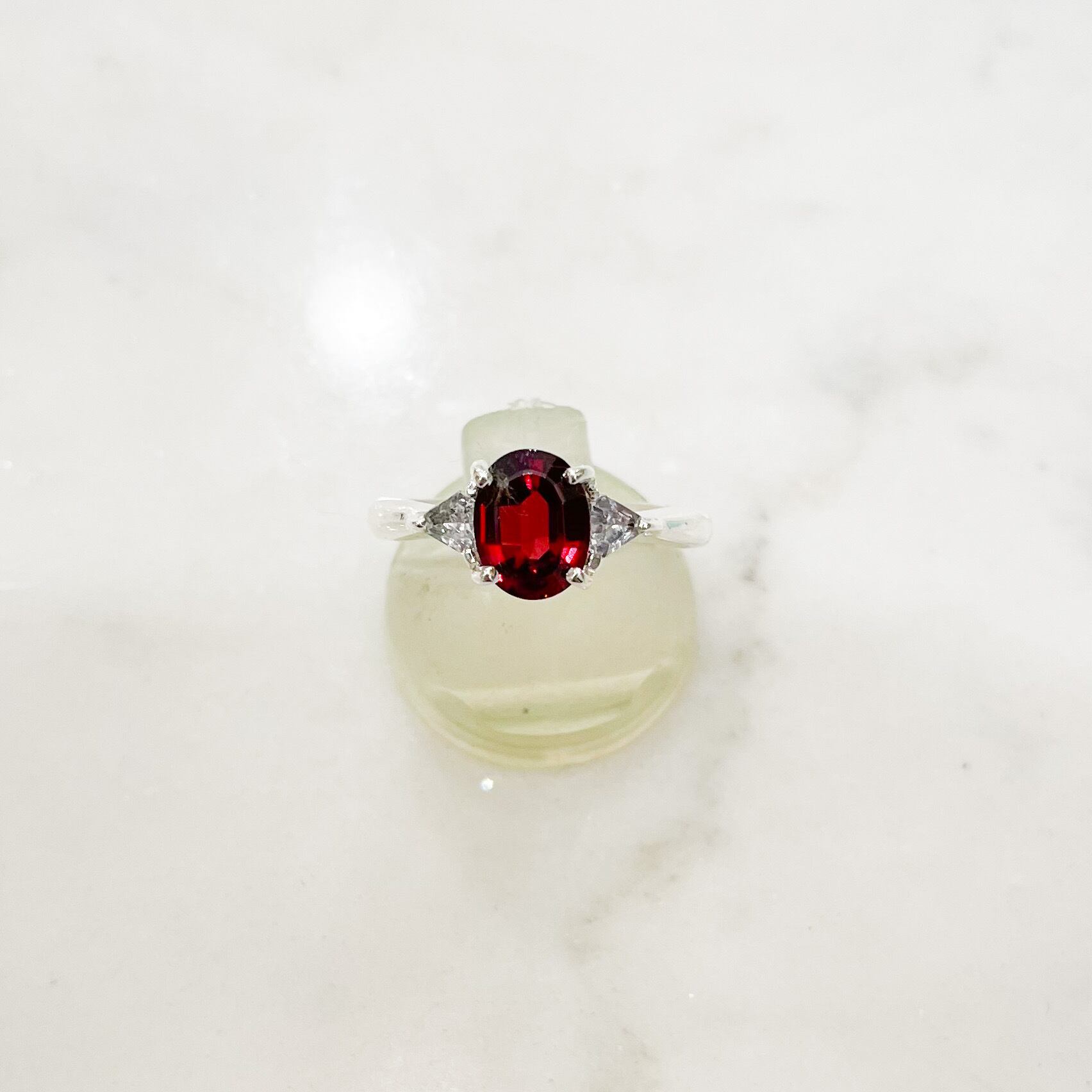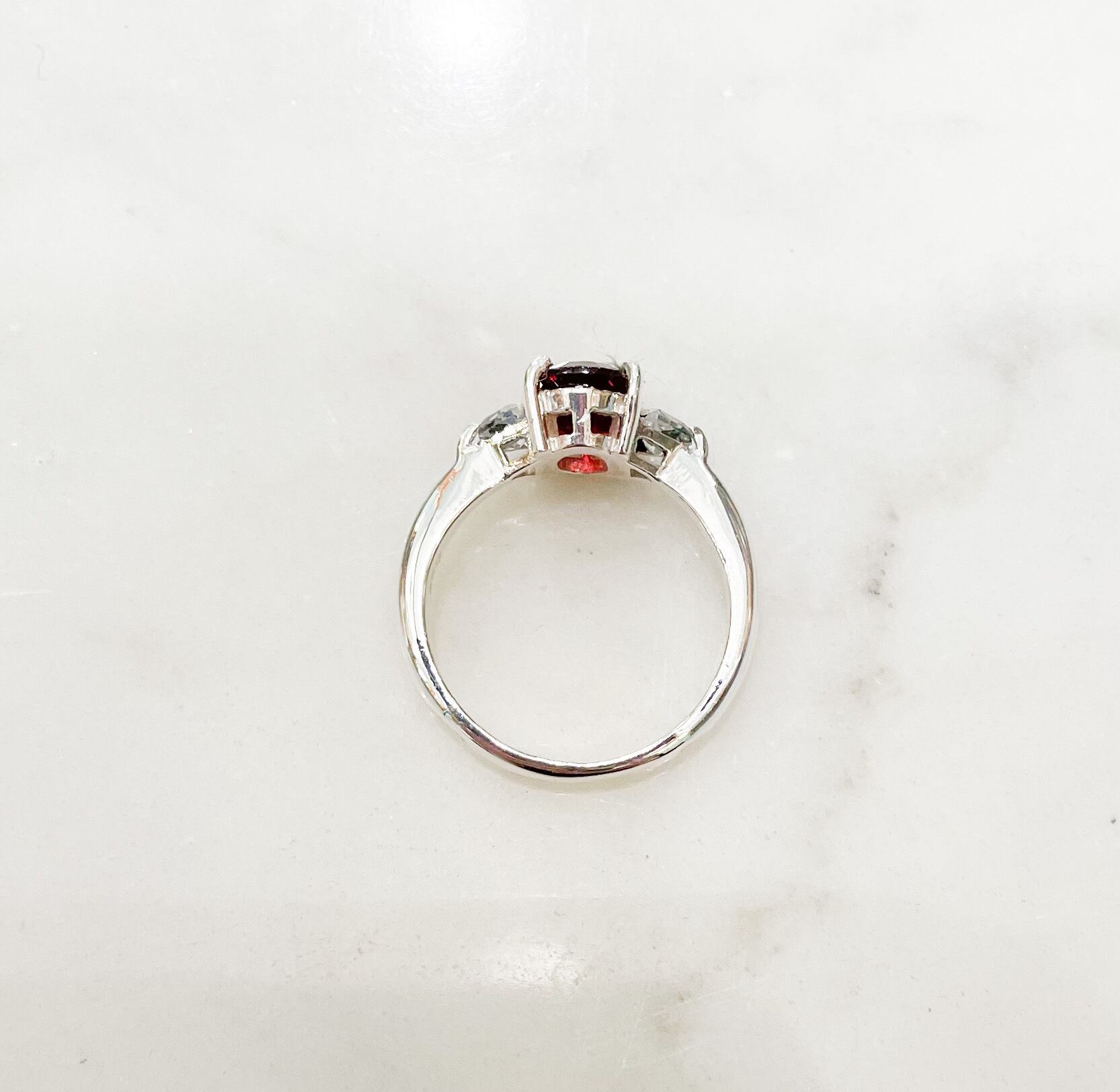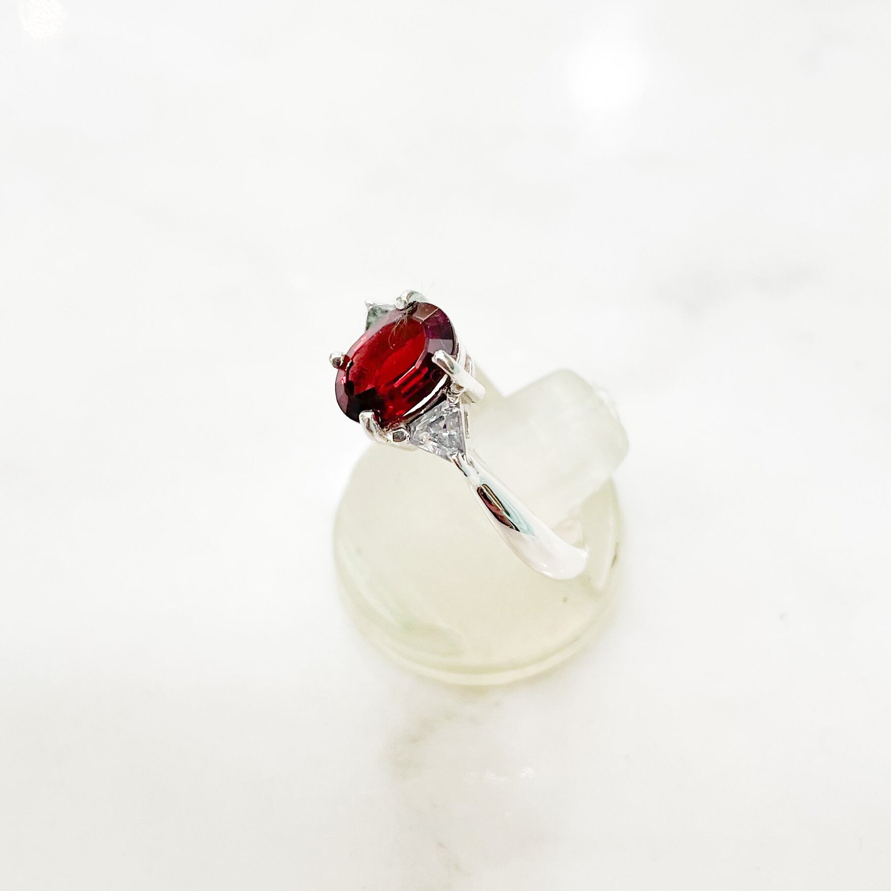 オーバルのガーネット(1.64ct)と三角ホワイトサファイアのシルバー台リング