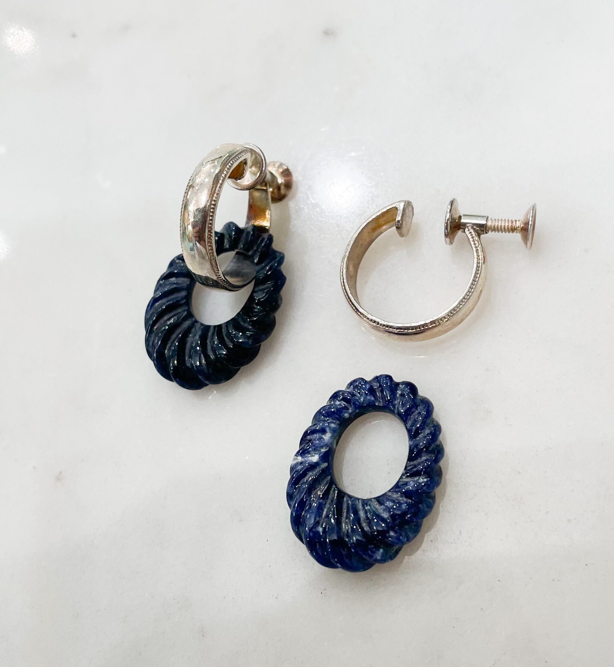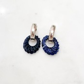 このイヤリングは、シンプルなシルバーの輪のイヤリングにソーダライトの輪をひっかけたものになります。