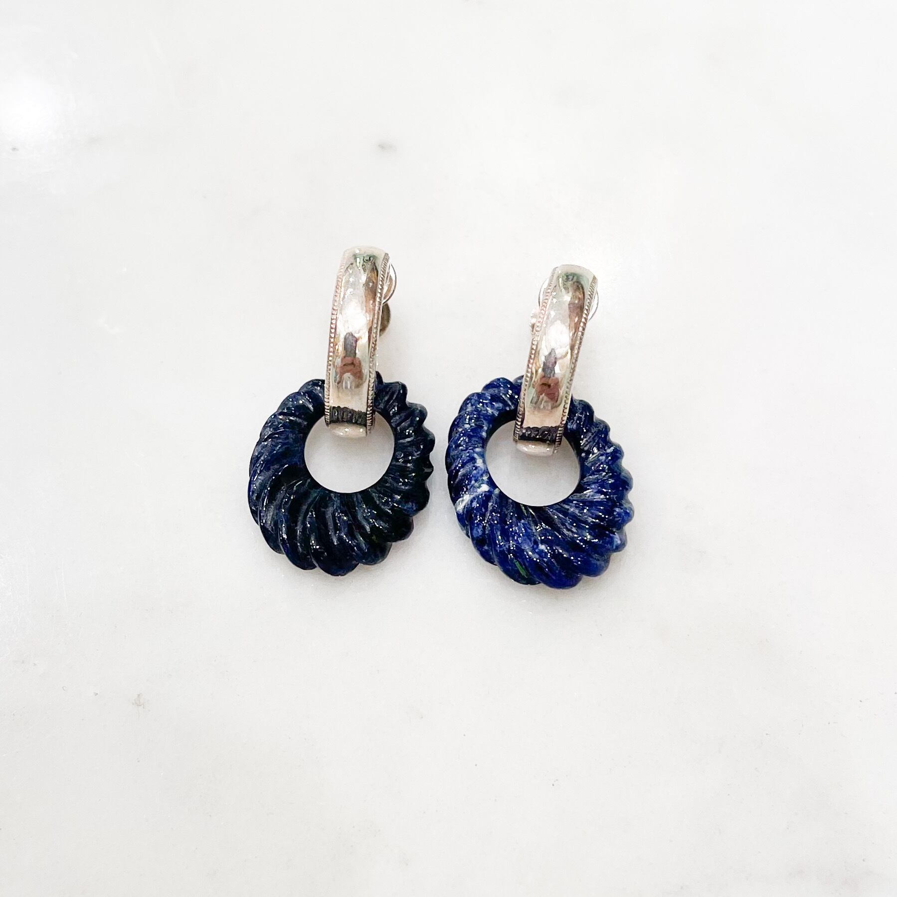 ですので、シンプルなシルバーイヤリングとしても、ソーダライトが揺れるイヤリングとしても、ツーウェイで楽しめるイヤリングとなっています。