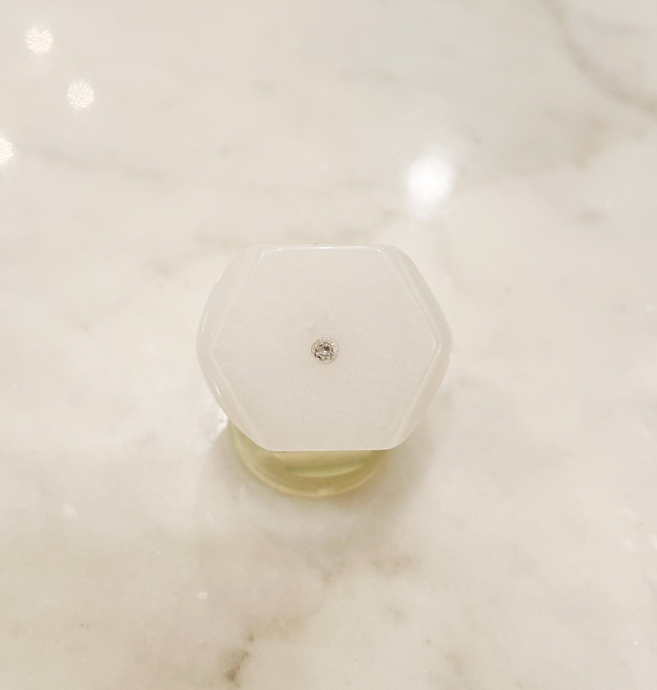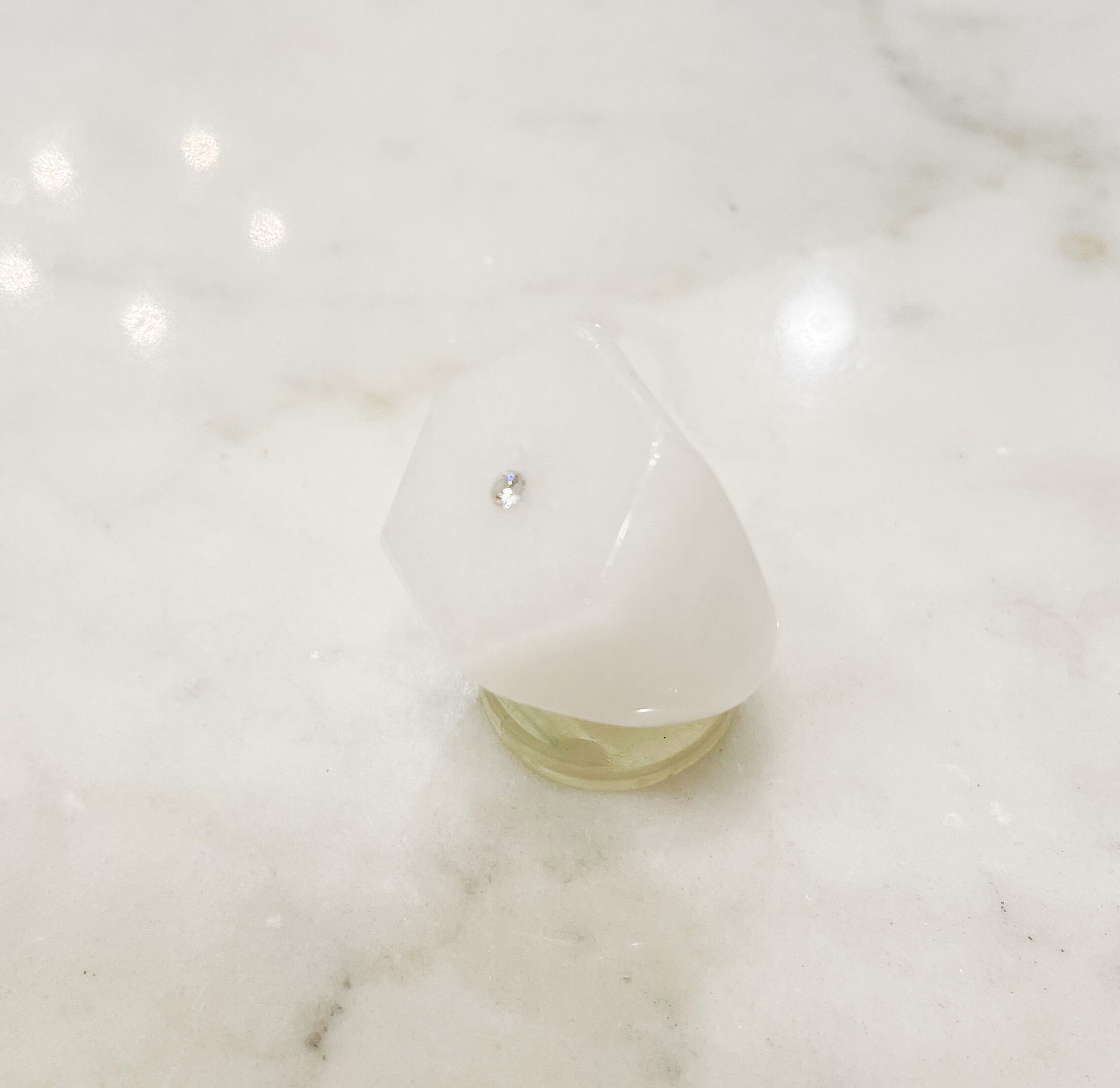 白いミルキージェイドの中で輝くダイヤモンドのようなキュービックは、霧の中に煌めく星のよう。