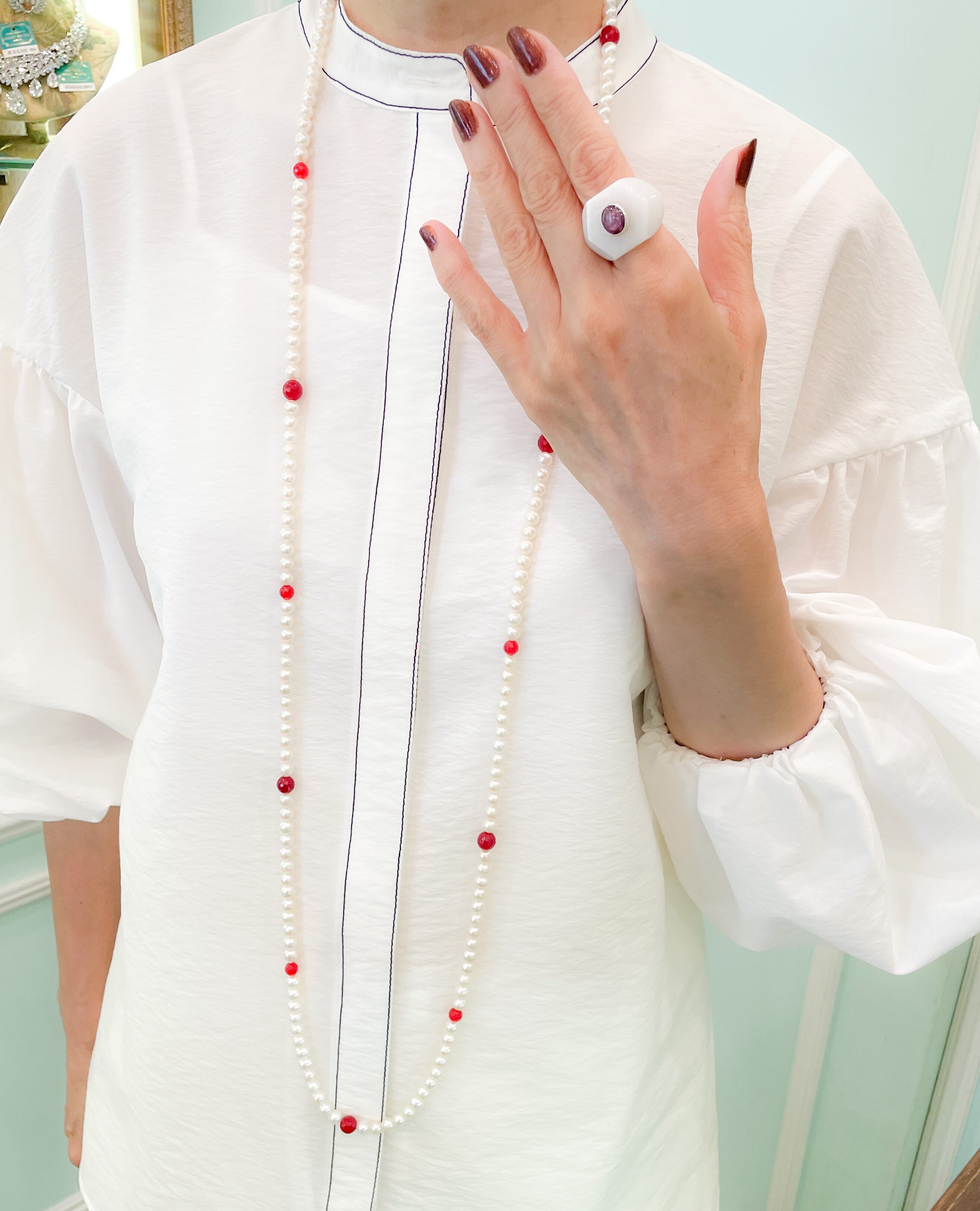 ミルキージェイドの優しいトーンとシルバーに深いえんじ色のコントラストも凄く綺麗です。