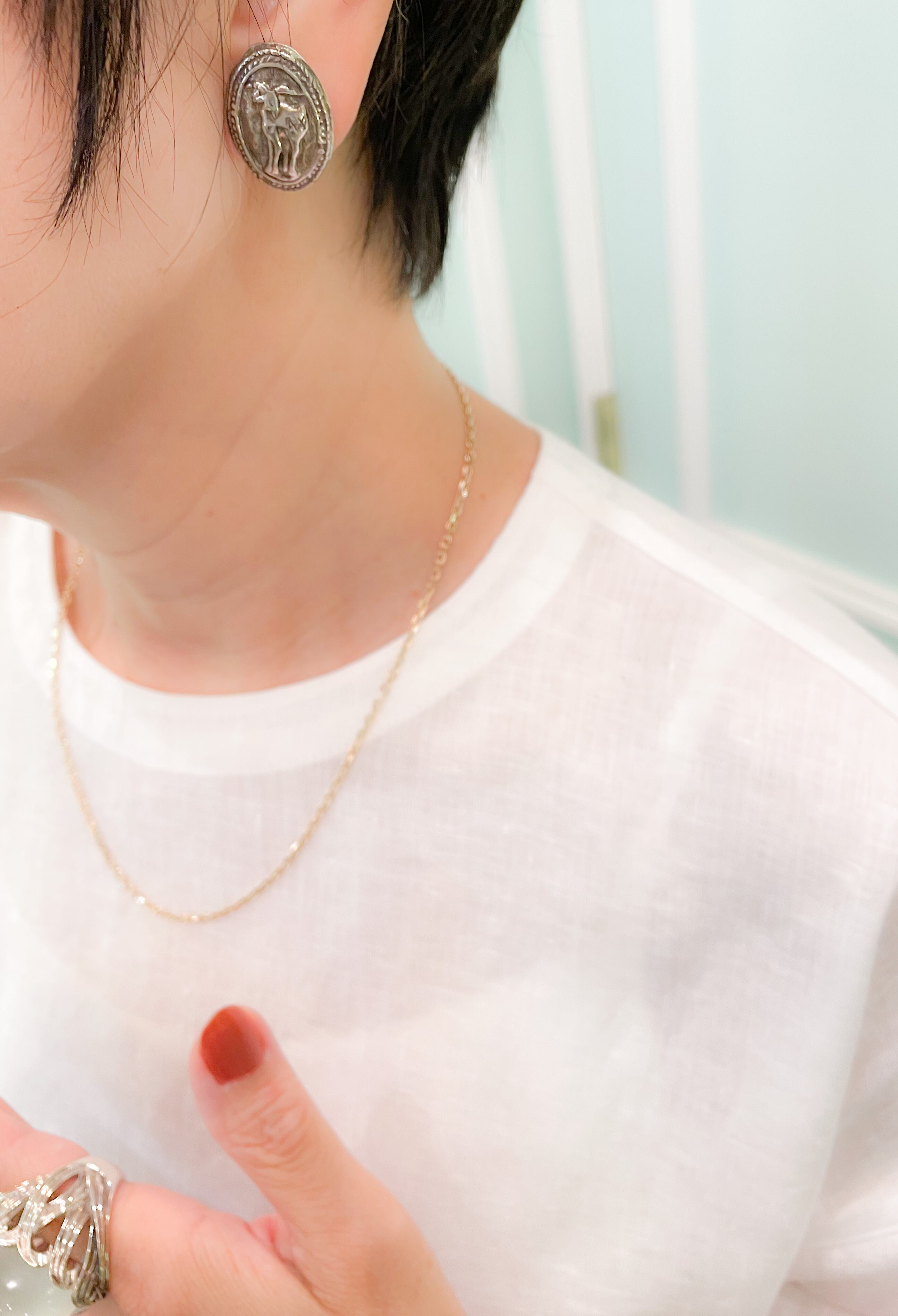 素材感はシルバーだけのシンプルさながら、アキオモリらしいモチーフとアンティークなような仕上げでグッと個性的に。