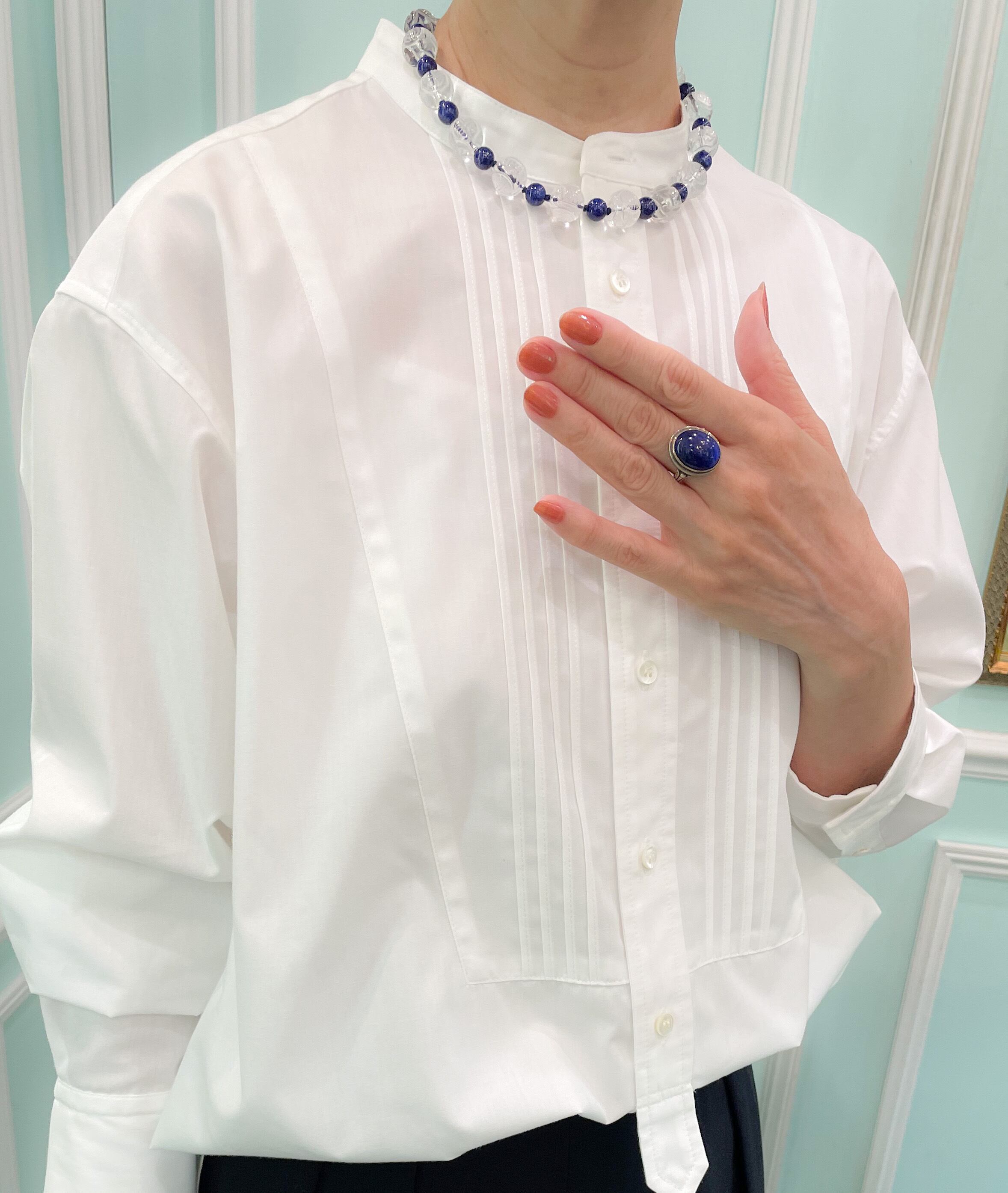 涼やかな透明な水晶と、濃いはっきりとしたトーンのラピスラズリ。