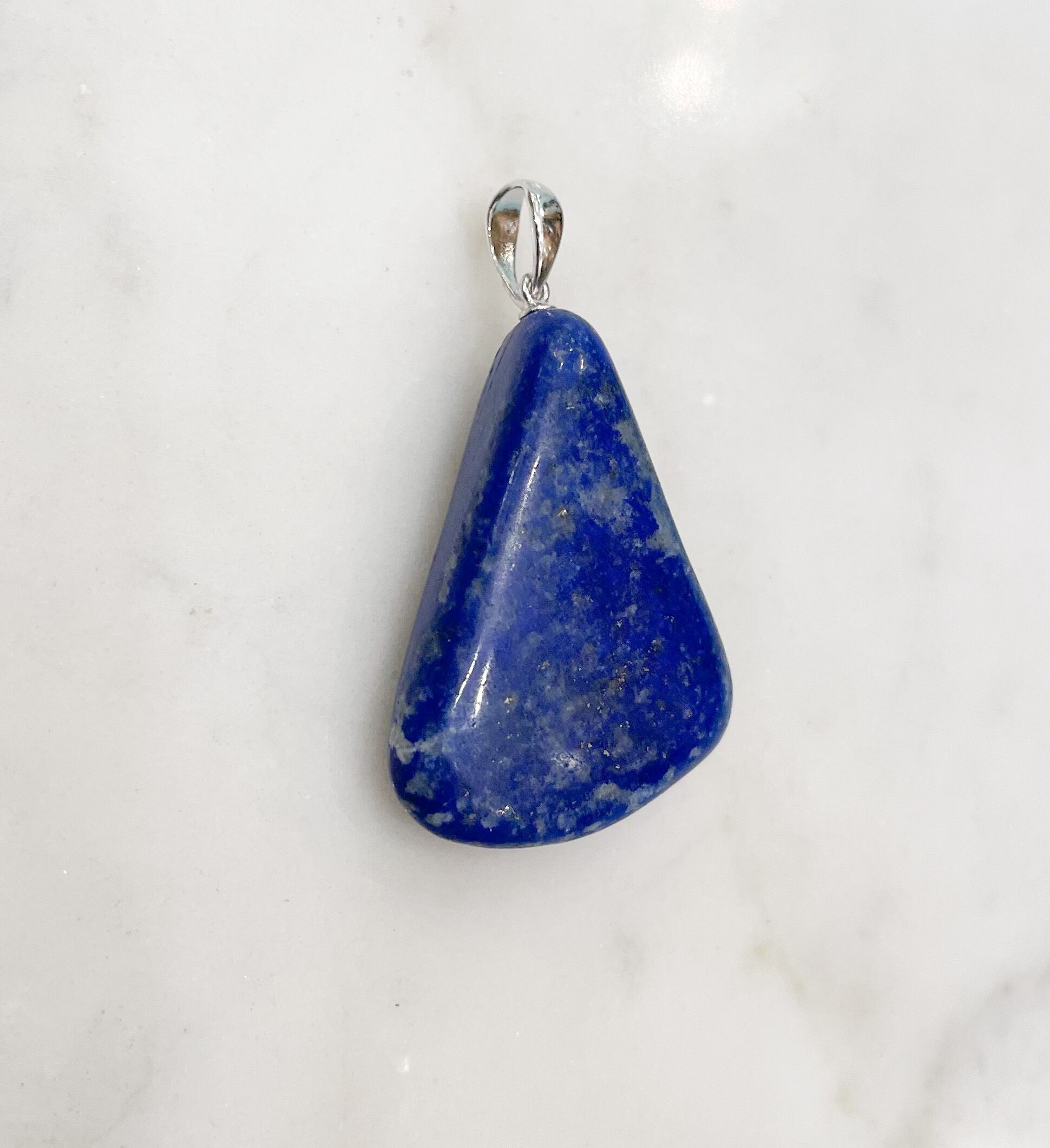 このナゲット型のペンダントは、ユニークな形と、ラピスラズリの独特の美しさを楽しめるシンプルなデザイン。